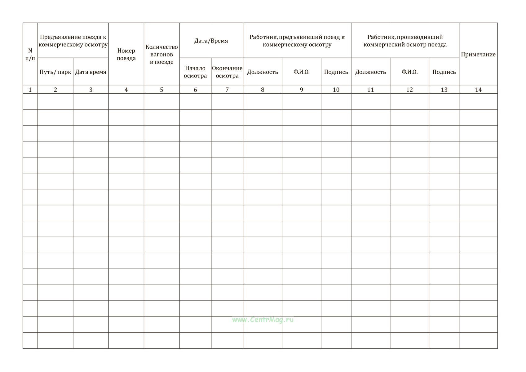Книга регистрации коммерческого осмотра поездов (Форма ГУ-99) имеет графы:
