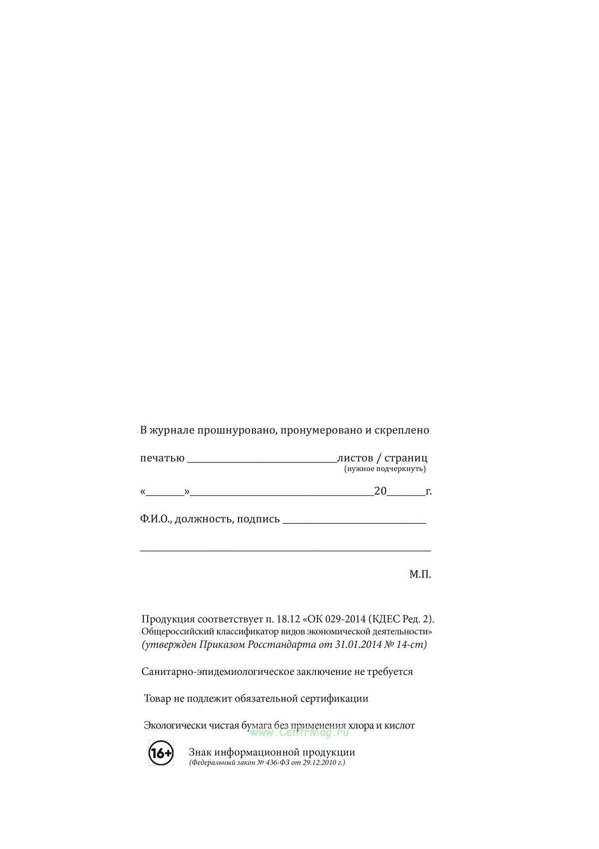Вы получаете печатную продукцию прошнурованной и c местом для вашей печати в соответствии с действующими нормативными документами: