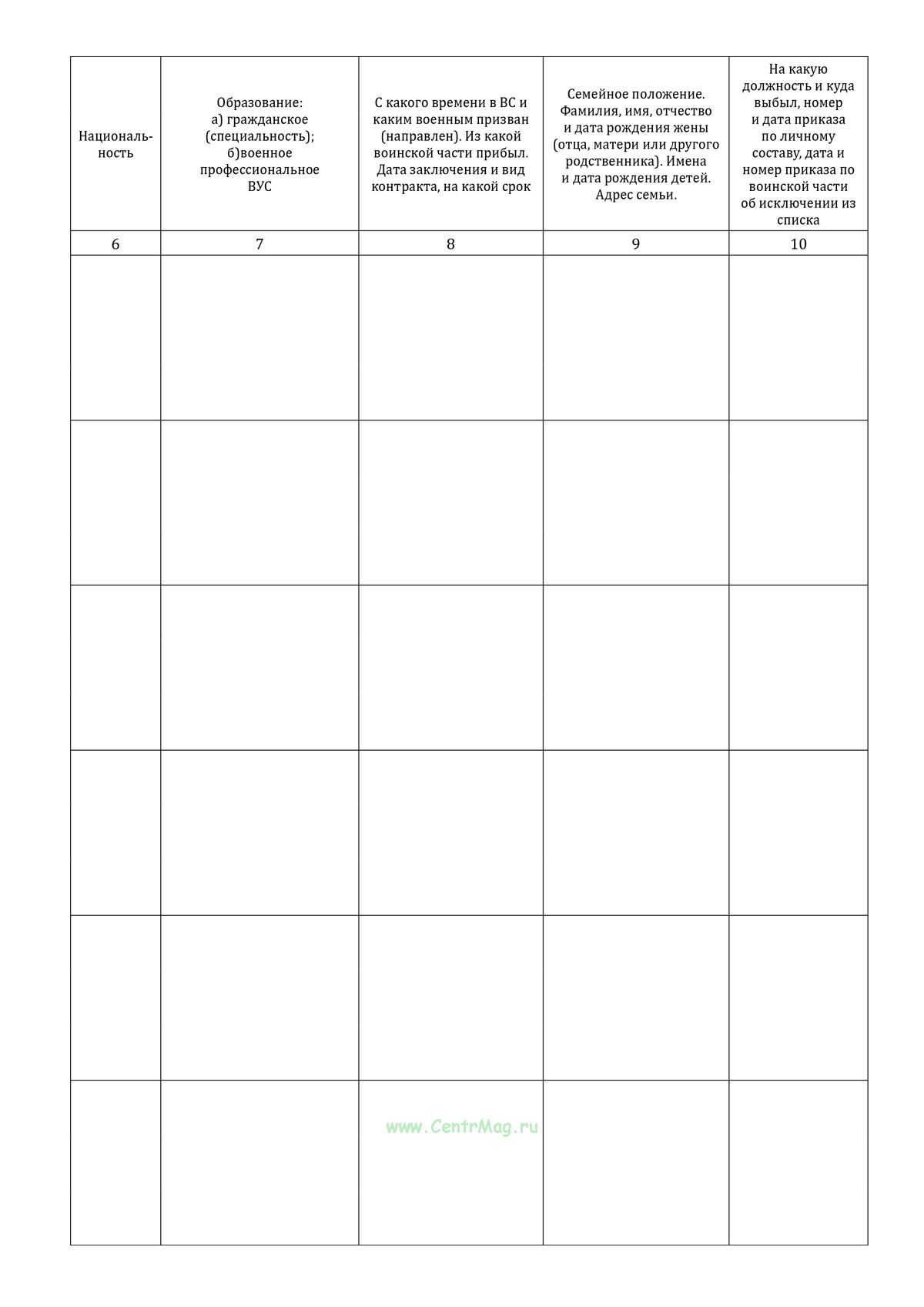 10. На какую должность и куда выбыл, номер и дата приказа по личному составу, дата и номер приказа по воинской части об исключении из списка