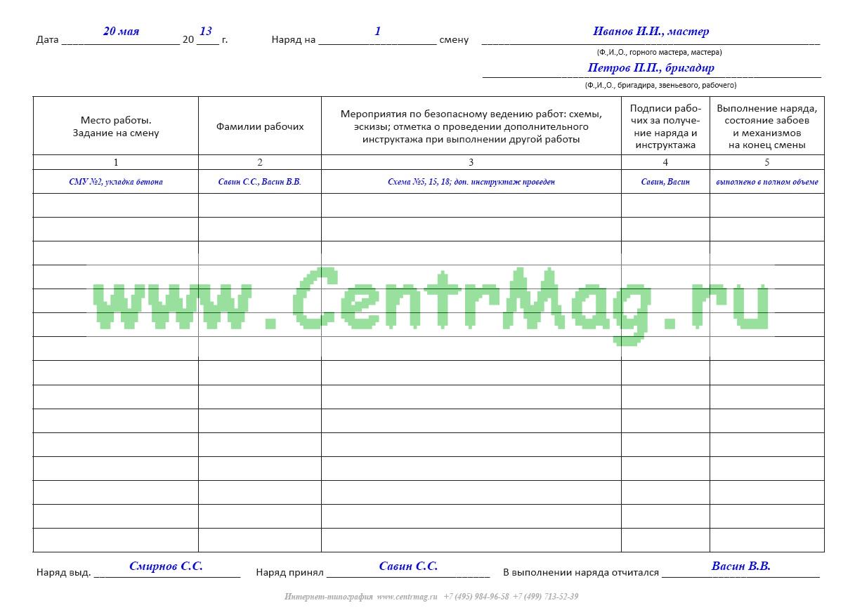 3. Вместе с фамилиями лиц, указываемых в наряде, вписываются их инициалы.