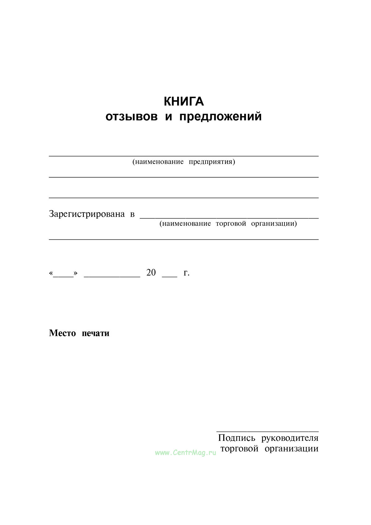6. Изъятие книги отзывов и предложений из торгового зала для любых целей не допускается.