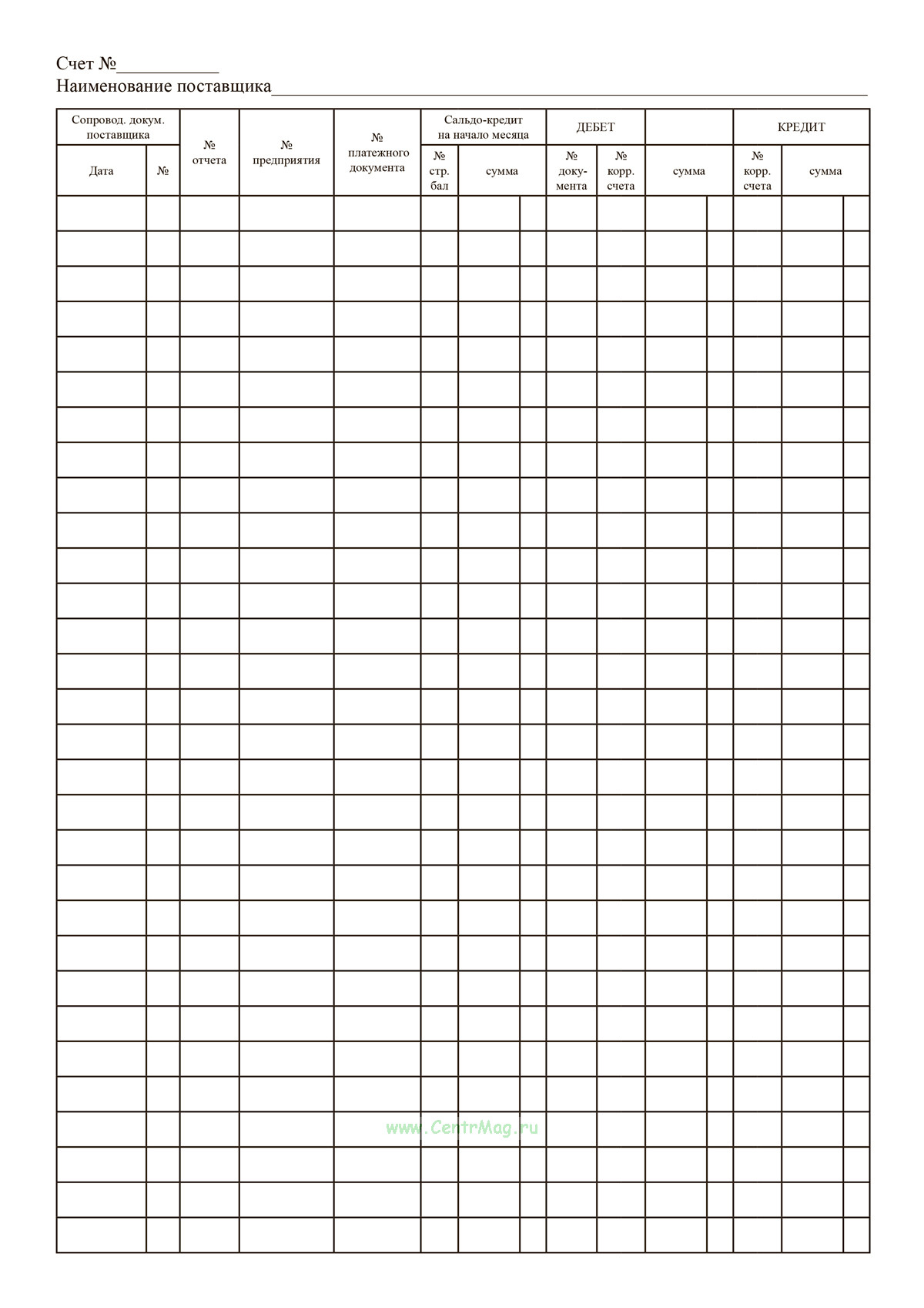 Книга предназначена для ведения учета расчетов с поставщиками на основании лицевых счетов. Содержит структурированные записи, обеспечивающие контроль и систематизацию информации о взаиморасчетах с контрагентами.