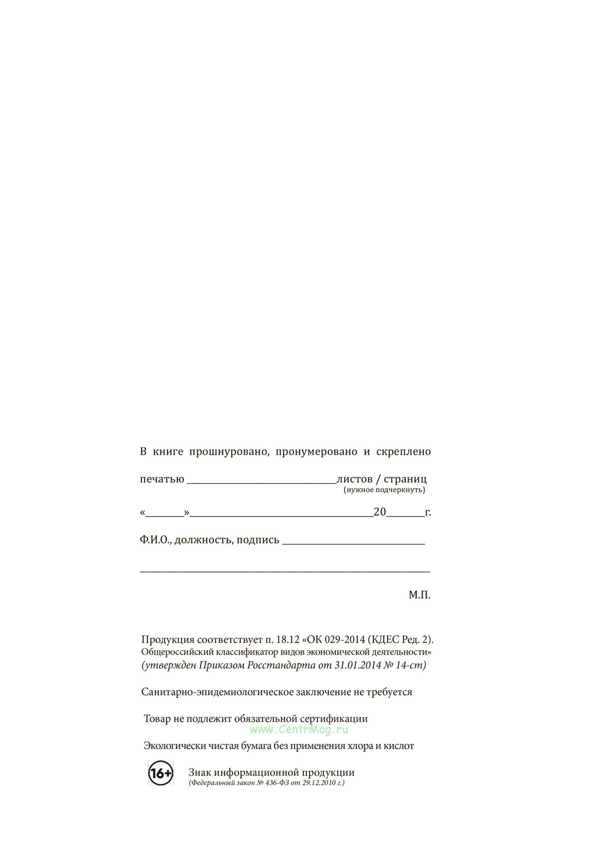 Вы получаете печатную продукцию прошнурованной и c местом для вашей печати в соответствии с действующими нормативными документами: