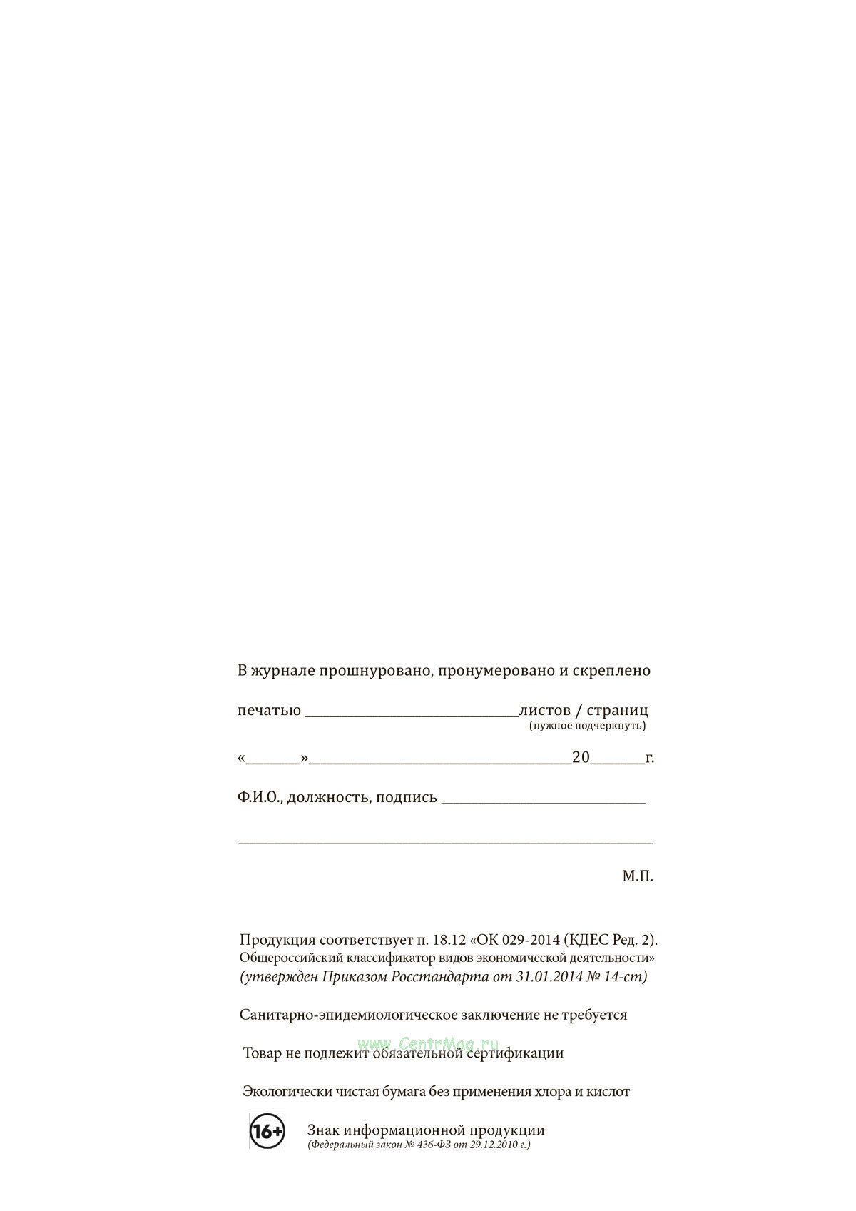 Вы получаете печатную продукцию прошнурованной и c местом для вашей печати в соответствии с действующими нормативными документами: