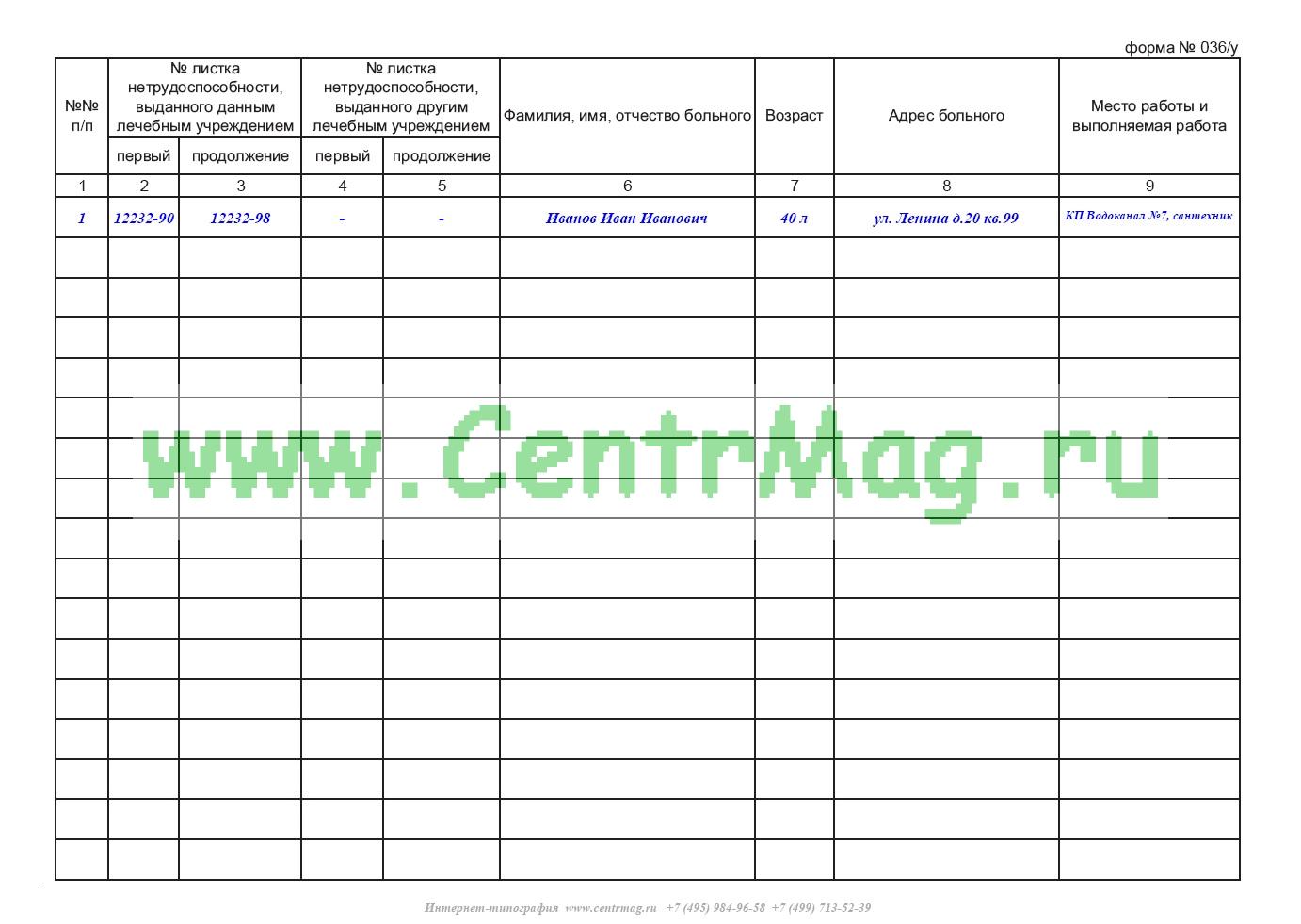 Записи в книге регистрации листков временной нетрудоспособности 036/у делаются четко, не допускаются исправления и зачеркивания.