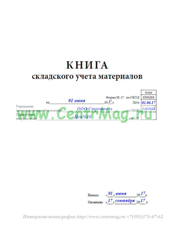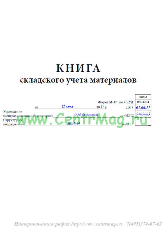 Книга складского учета материалов по форме М-17 применяется на складах (в кладовых) вместо карточек складского учета.