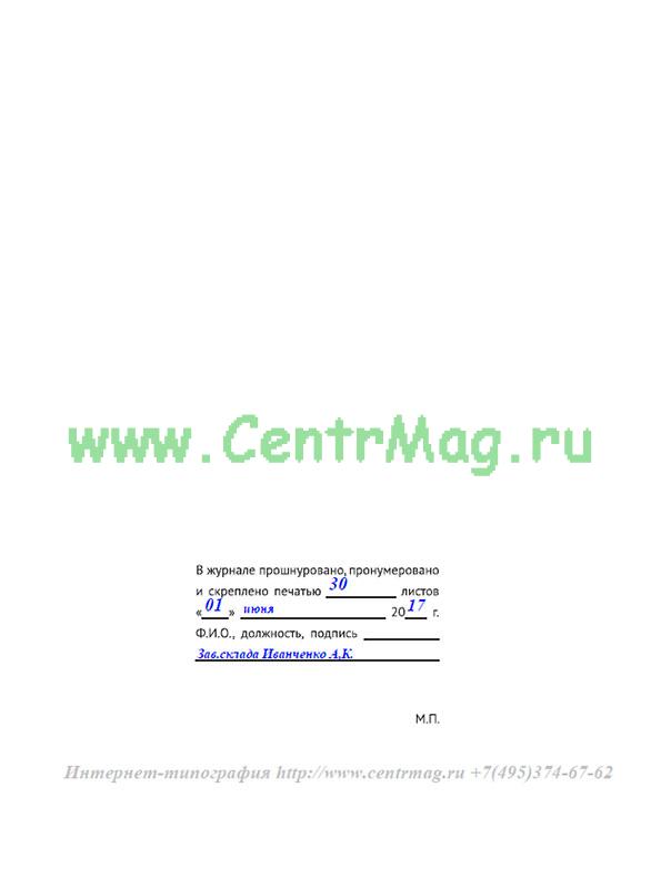 Количество листов в книге складского учета материалов, М-17 заверяется подписью главного бухгалтера или лица, им уполномоченного, и скрепляется печатью организации.