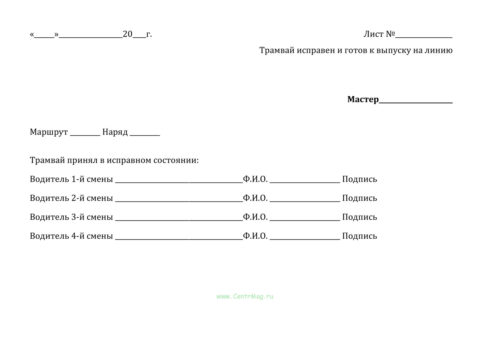 Водитель 4-й смены ___________Ф.И.О.___________ Подпись