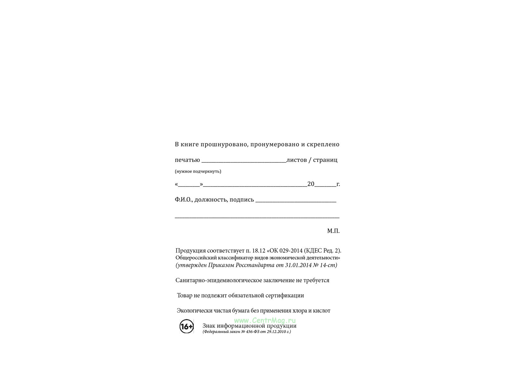 Вы получаете печатную продукцию прошнурованной и c местом для вашей печати в соответствии с действующими нормативными документами: