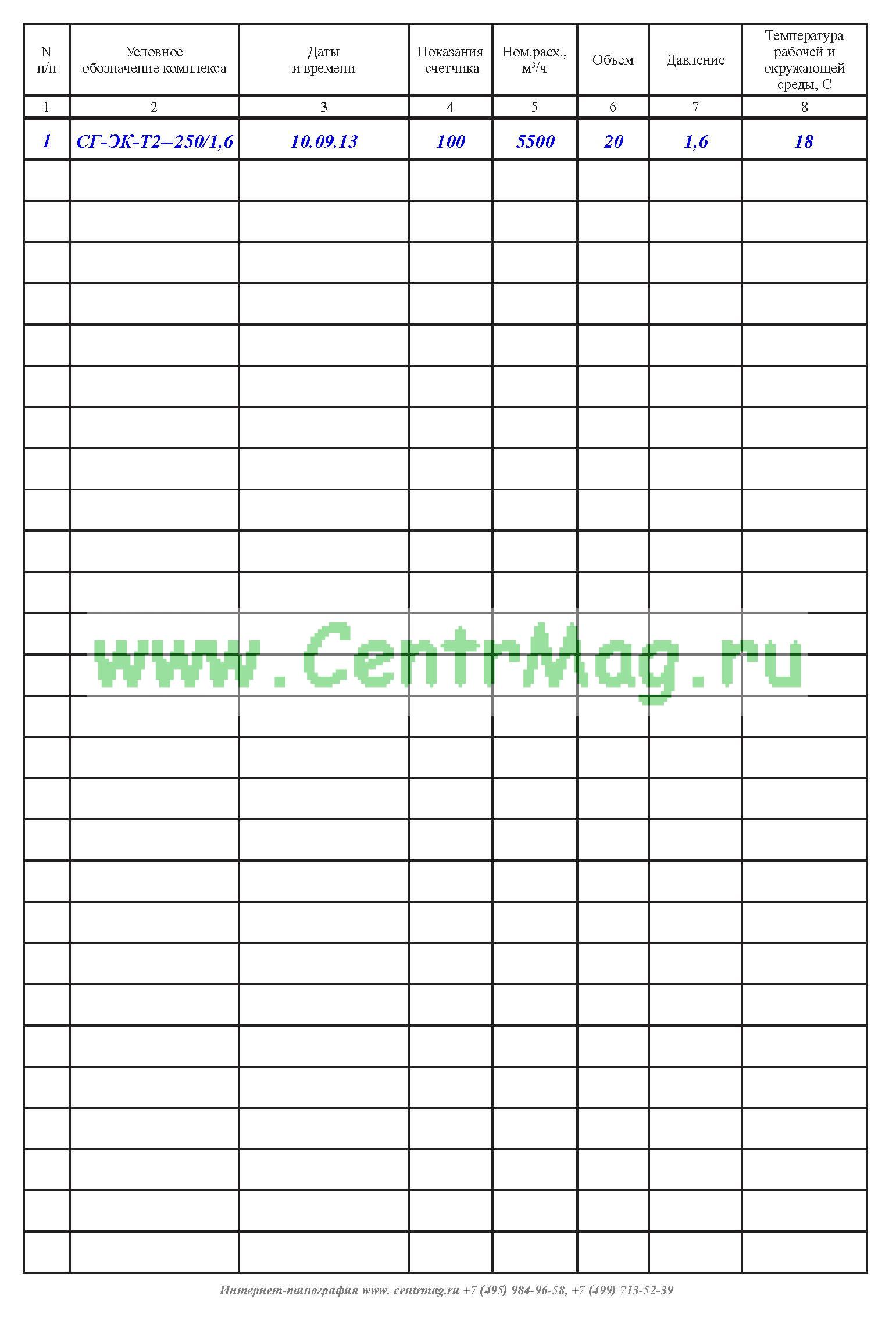 Книга учета показаний параметров комплекса СГ-ЭК содержит графы: