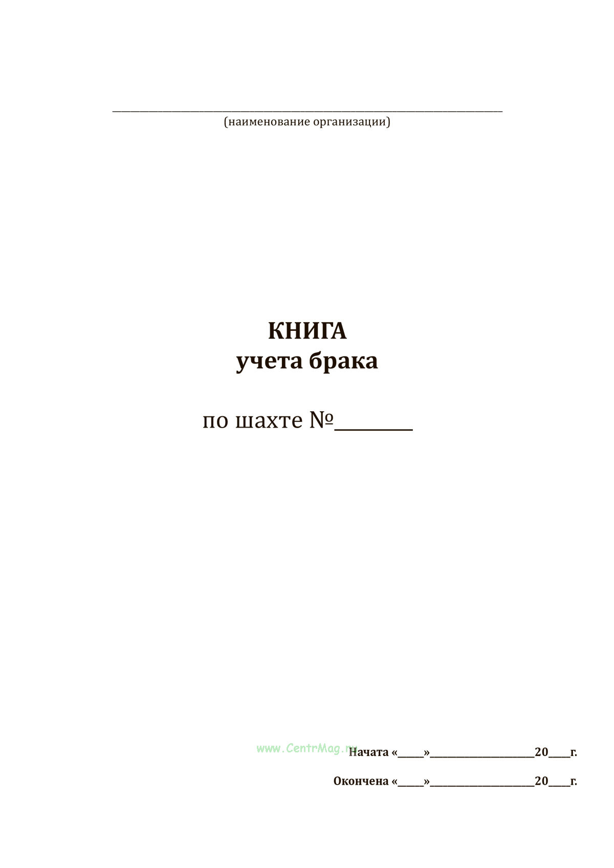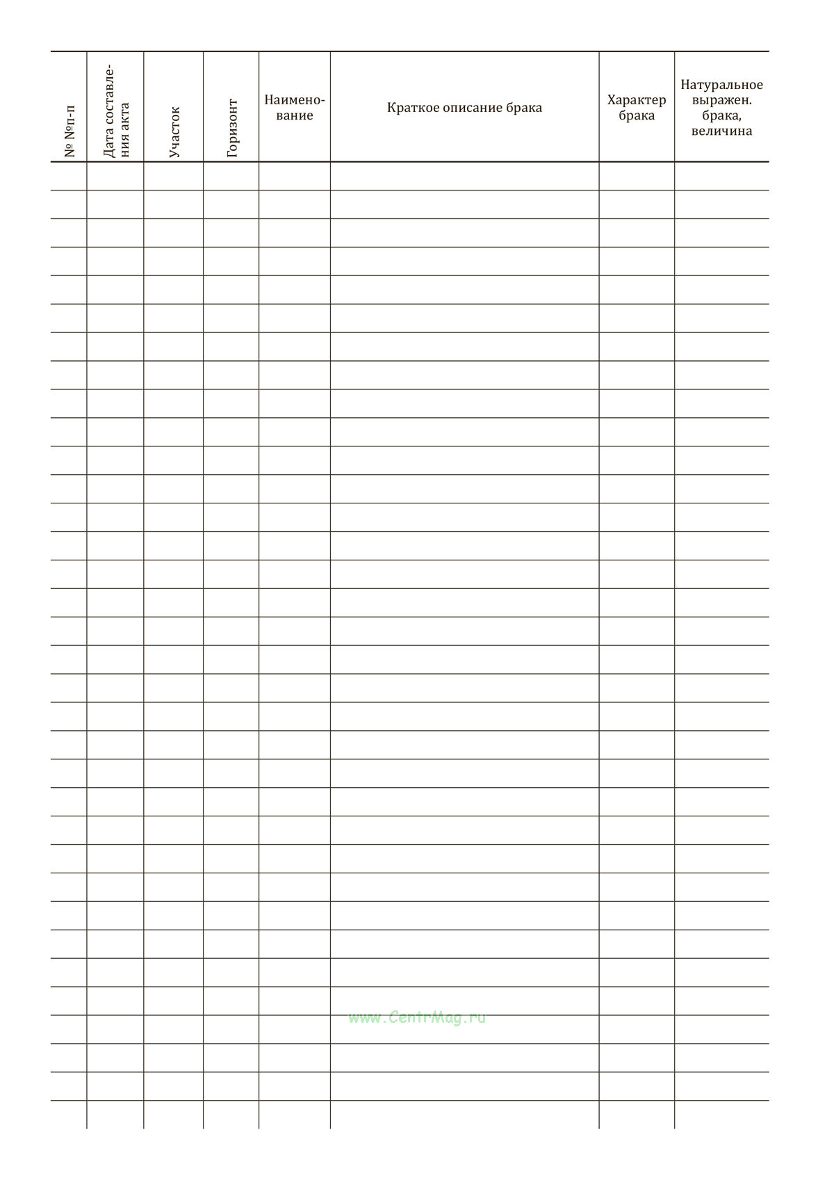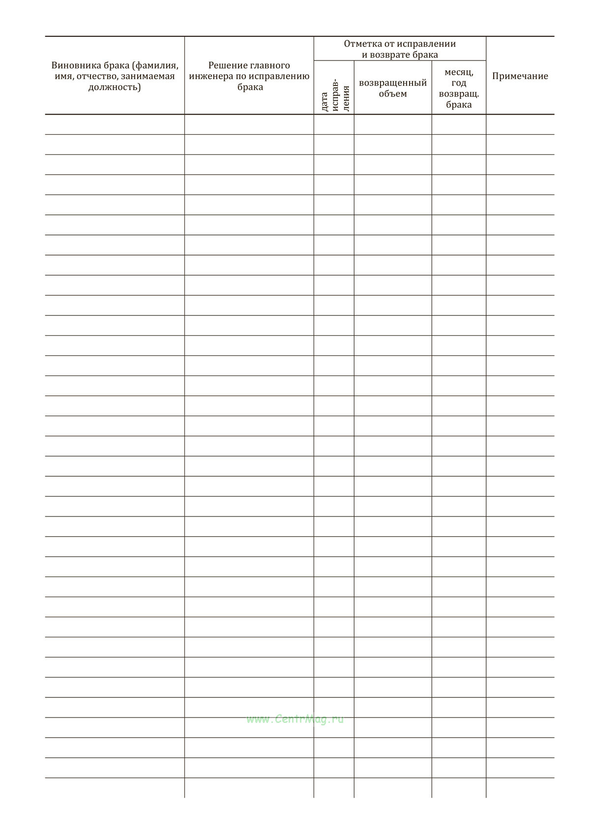 Книга предназначена для регистрации случаев выявленного брака в процессе горных работ, фиксации его характеристик, установления причин и виновных лиц, а также контроля за исправлением и возвратом забракованного объёма.