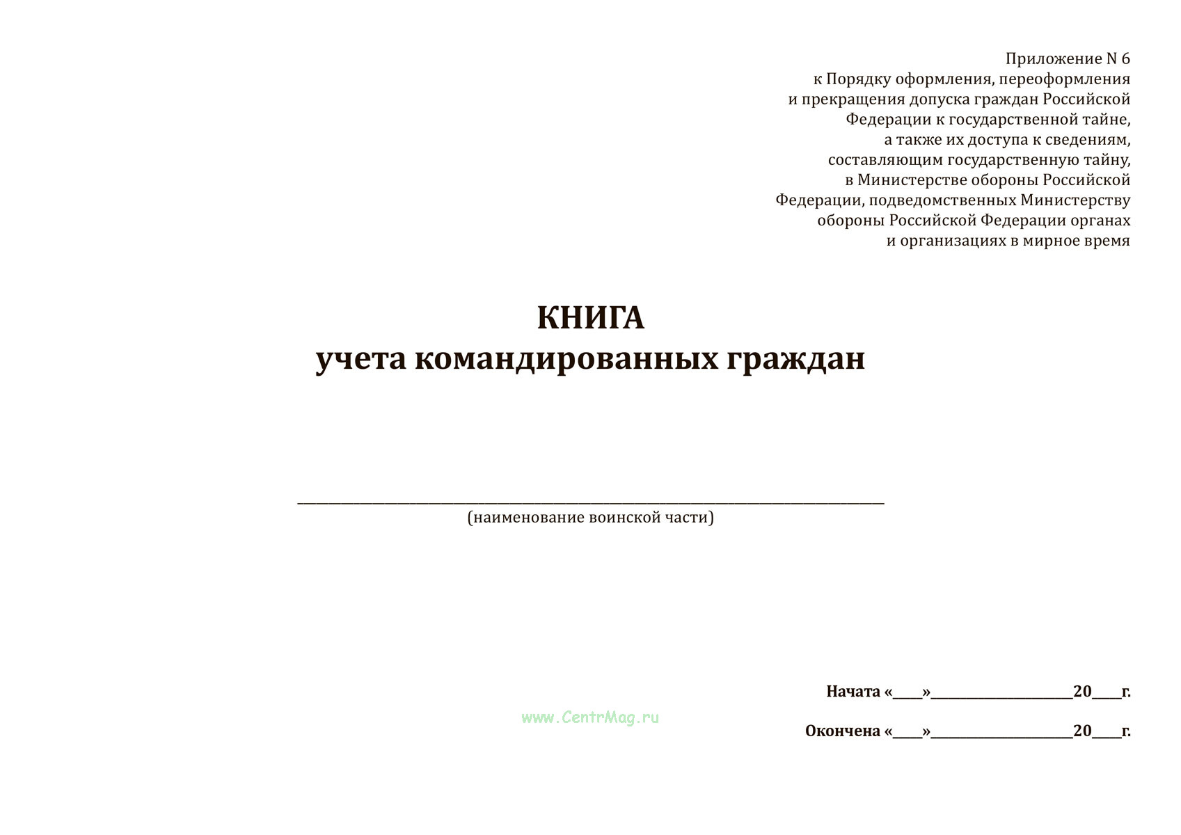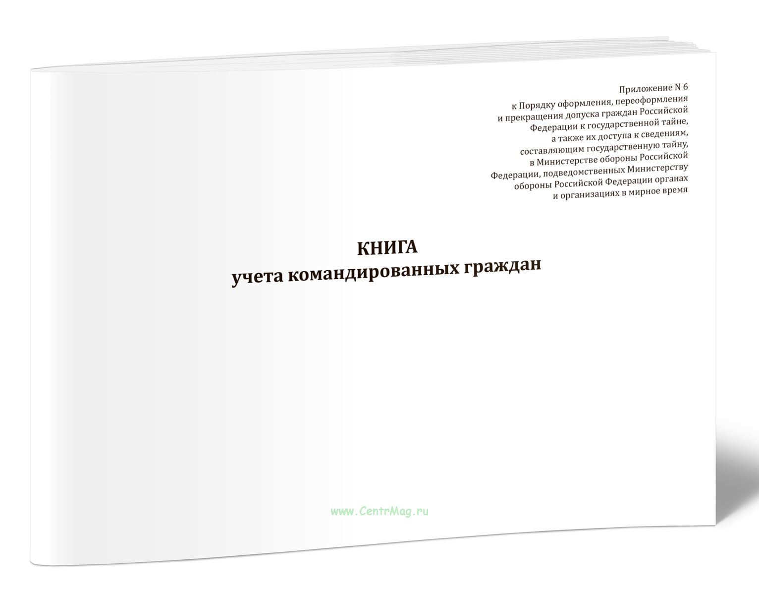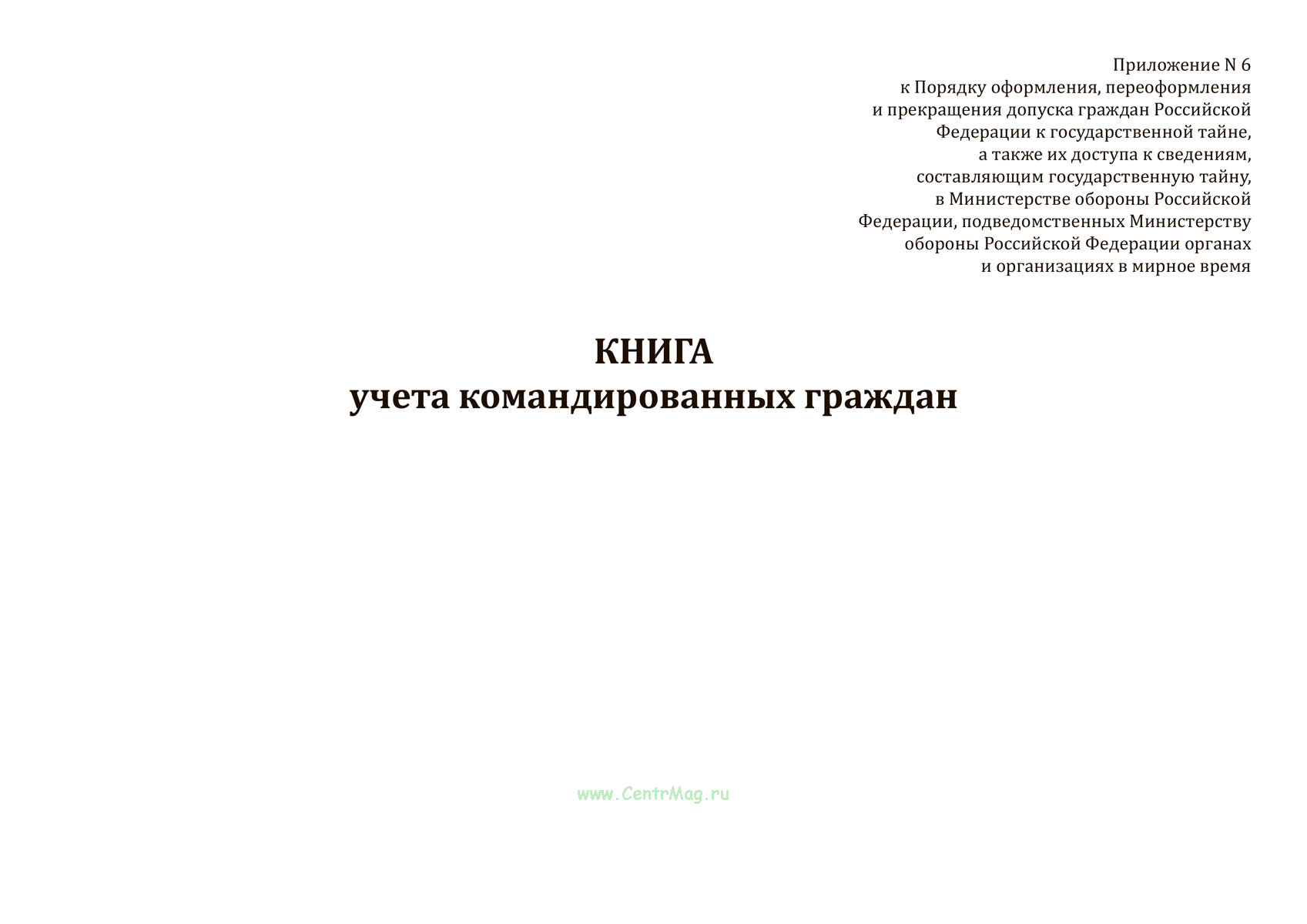 Форма Книги учета командированных гражда соответствует Приложению N 6 к Приказу Министра обороны РФ от 13.11.2025 N 705 "Об установлении Порядка оформления, переоформления и прекращения допуска граждан Российской Федерации к государственной тайне, а также их доступа к сведениям, составляющим государственную тайну, в Министерстве обороны Российской Федерации, подведомственных Министерству обороны Российской Федерации органах и организациях в мирное время"