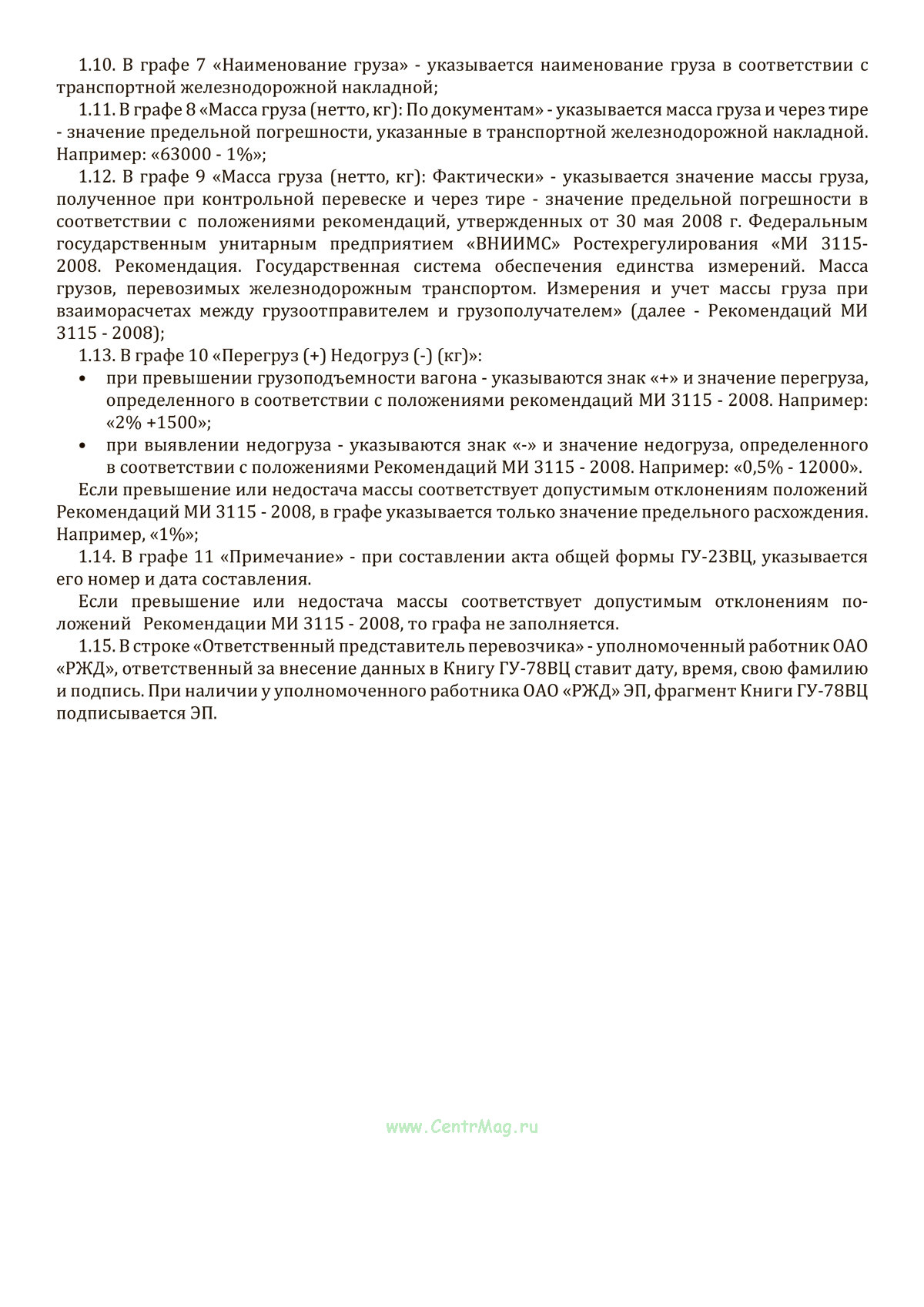 Книга учета контрольных перевесок вагонов формы ГУ-78ВЦ предназначена для записи сведений о результатах контрольной перевески вагонов, проводимой в соответствии со статьей 27 Федерального закона от 10 января 2003 г. N 18-ФЗ "Устав железнодорожного транспорта Российской Федерации" . В книгу должны быть внесены все вагоны, подвергнутые контрольной перевеске, независимо от ее результатов. Книга ведется в течение календарного года.