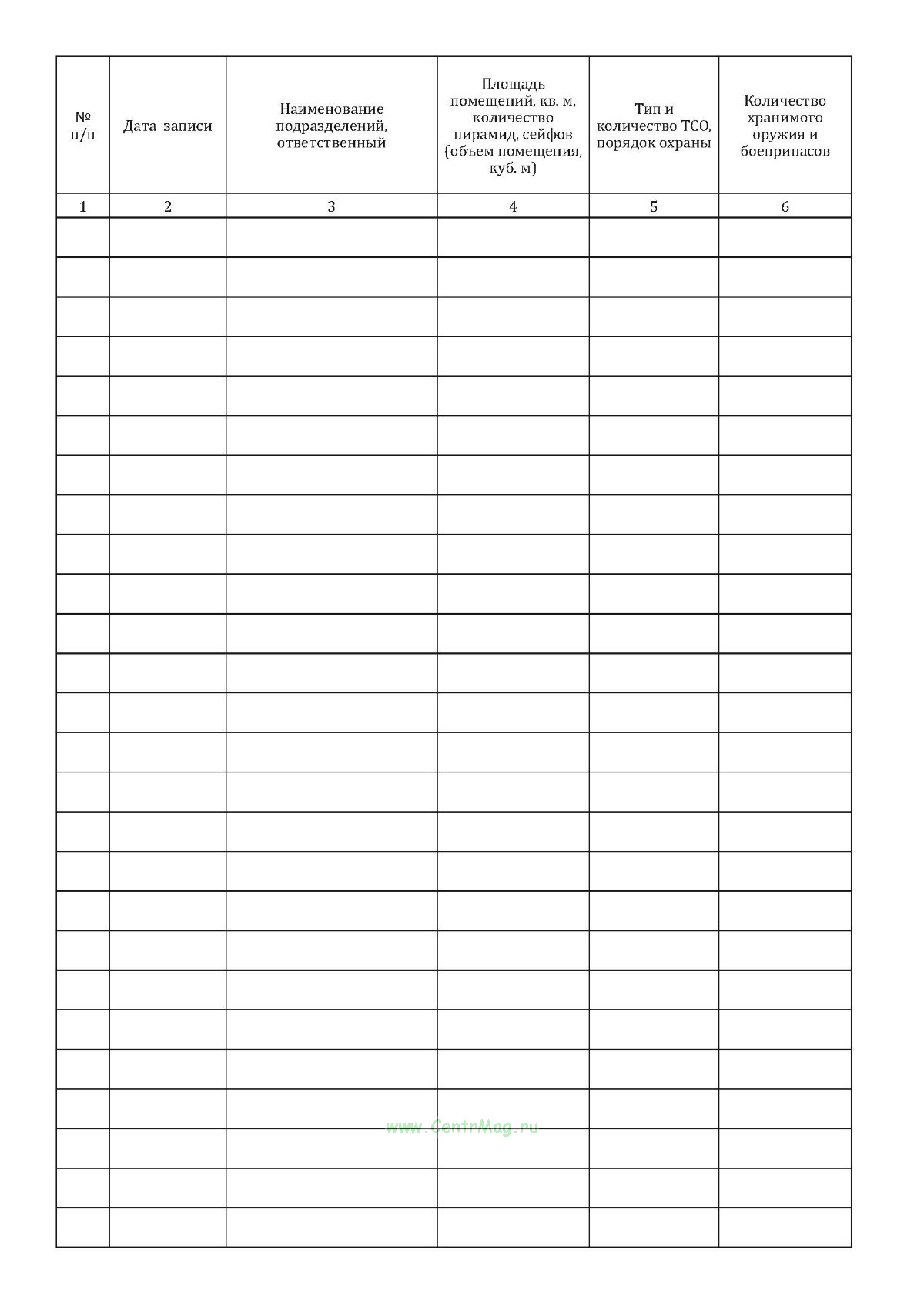 Книга учета мест хранения оружия (боеприпасов) имеет графы: