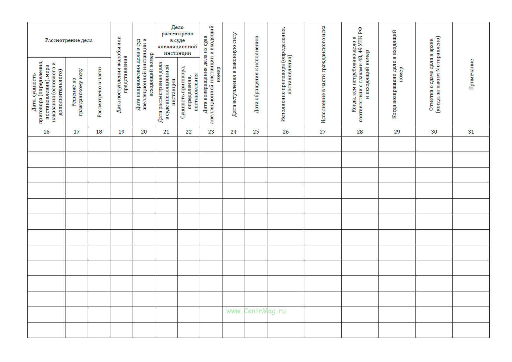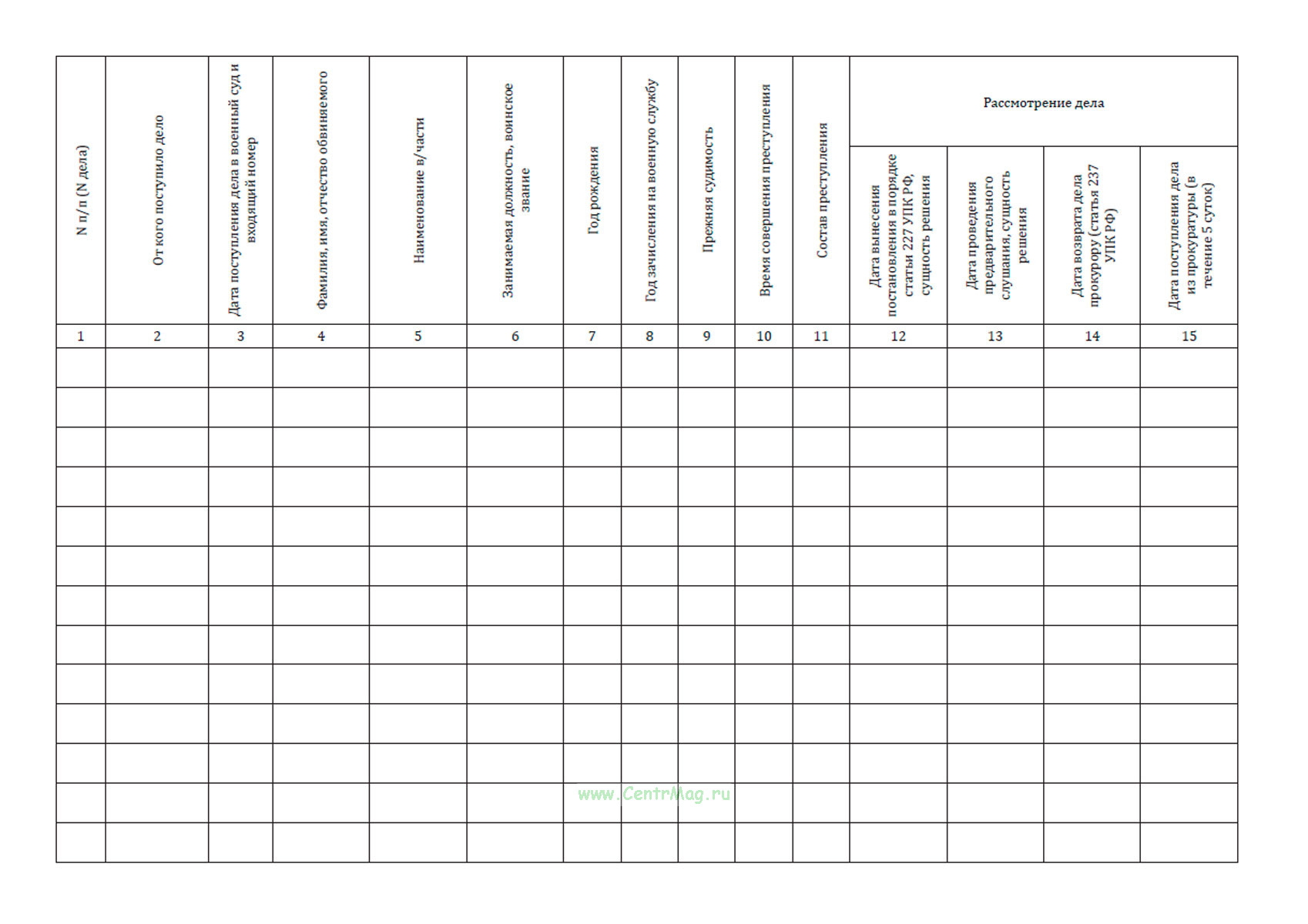 Книга учета (реестр) уголовных дел по первой инстанции (Форма N 17) имеет графы: