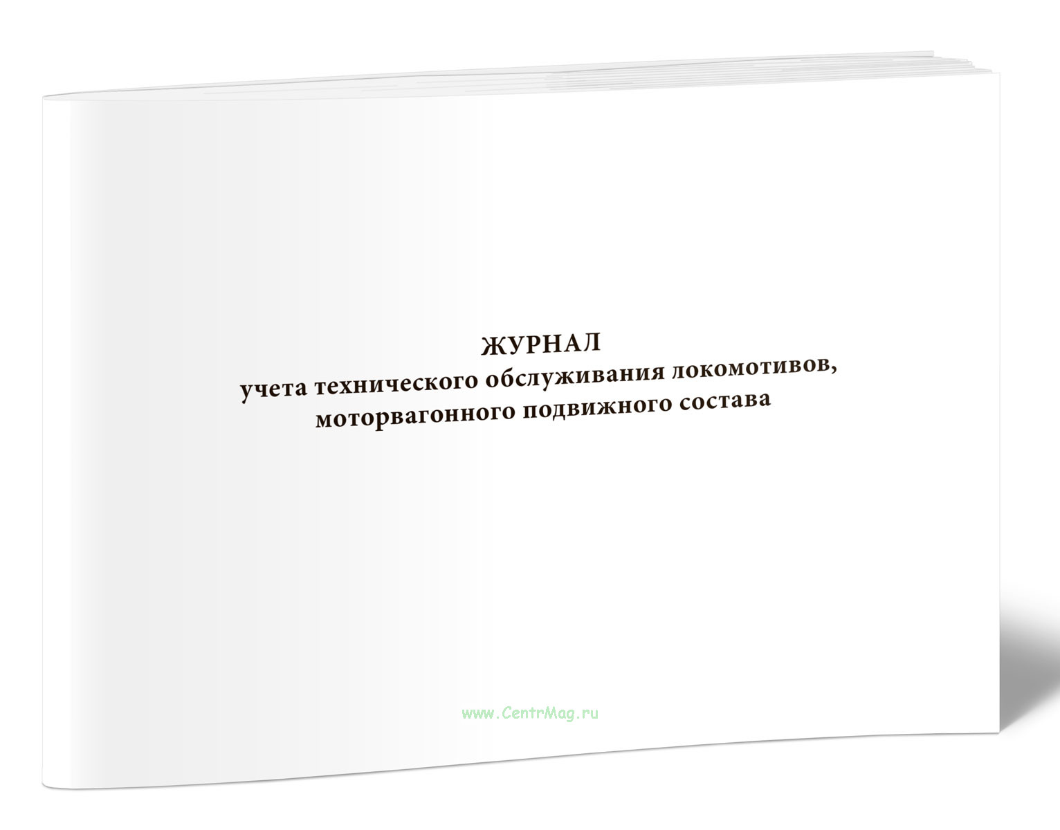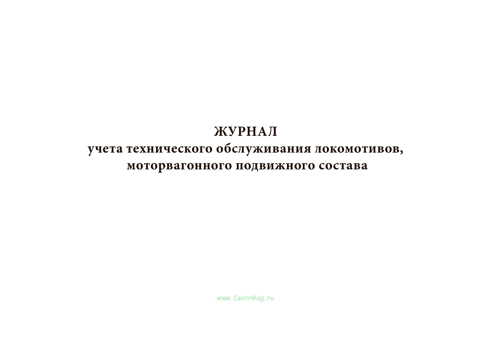 Книга предназначена для учета количества выполненных технических обслуживаний локомотивов и моторвагонного подвижного состава и времени нахождения их на техническом обслуживании. Ведется отдельно на каждый тип подвижного состава: электровозы, тепловозы, паровозы, электропоезда, дизель-поезда и автомотрисы. Заполняется мастером (бригадиром) комплексной бригады, выполняющей техническое обслуживание.