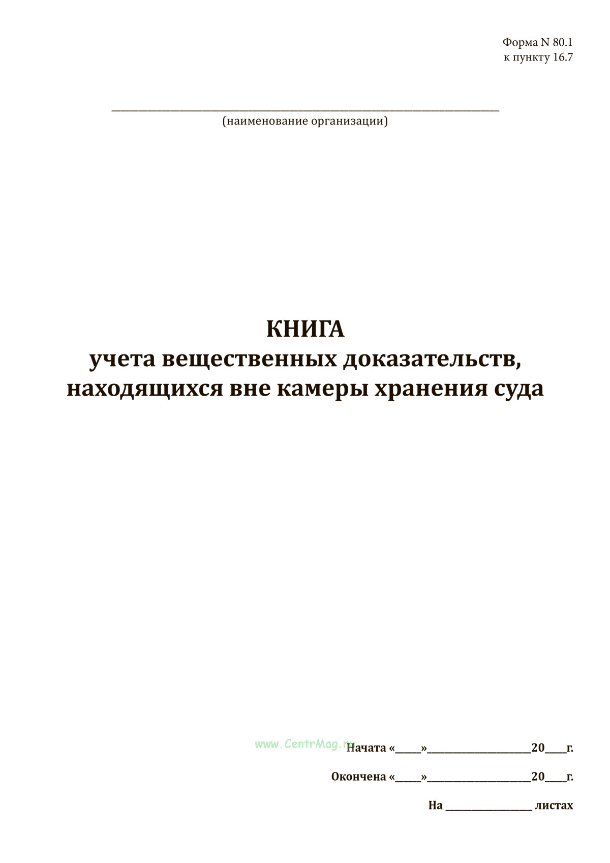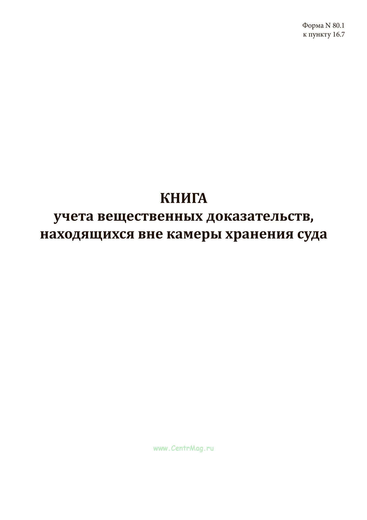 Форма книги учета вещественных доказательств, находящихся вне камеры хранения суда (N 80.1) соответствует Приложению N 2 к Приказу Судебного департамента при Верховном Суде РФ от 09.10.2014 N 219 "Об утверждении Инструкции по делопроизводству в военных судах".