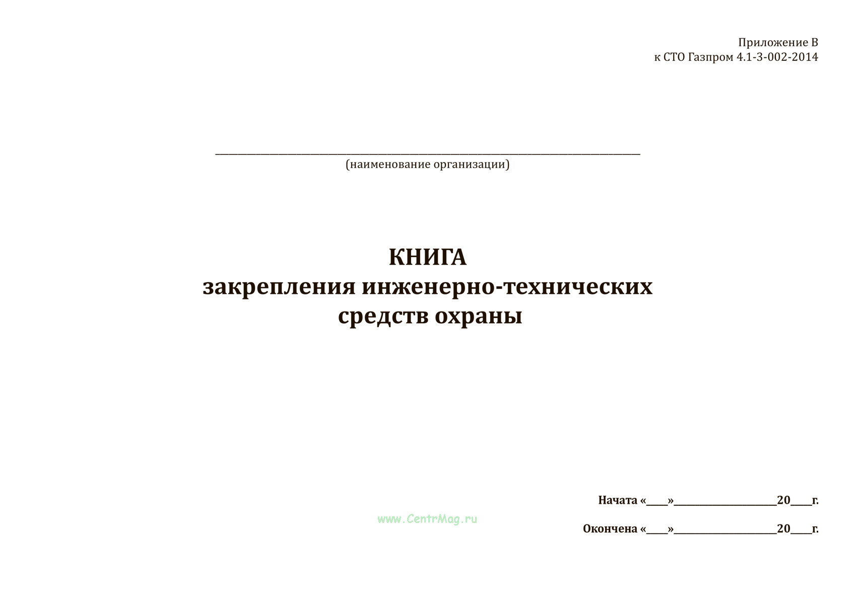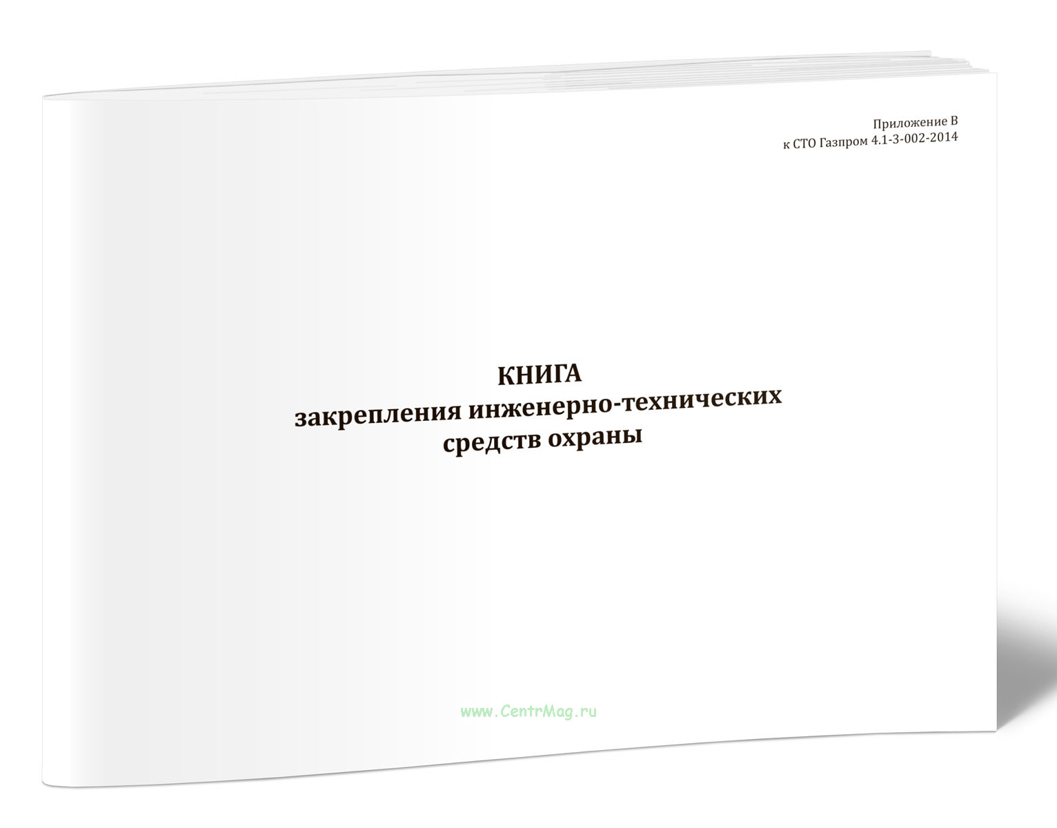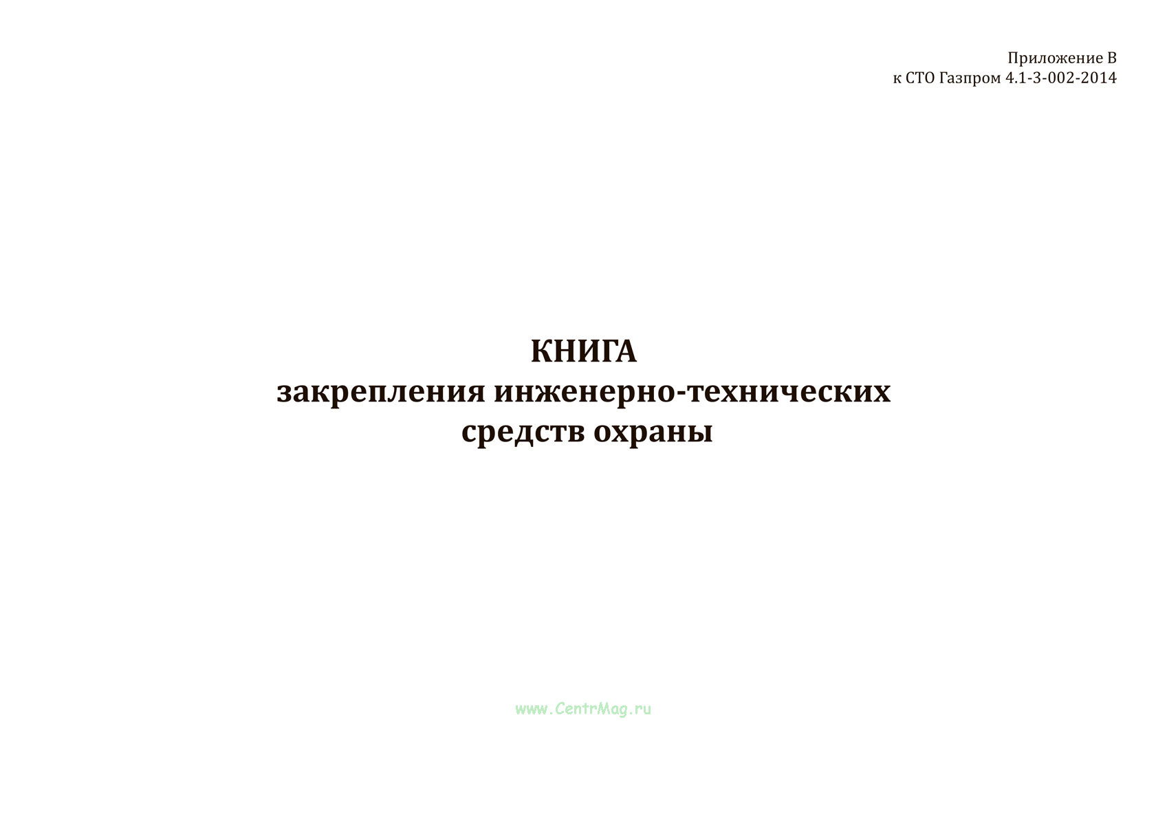 Форма Книги закрепления инженерно-технических средств охраны соответствует Приложению В к распоряжению ОАО "Газпром" от 14 августа 2014 г. № 193