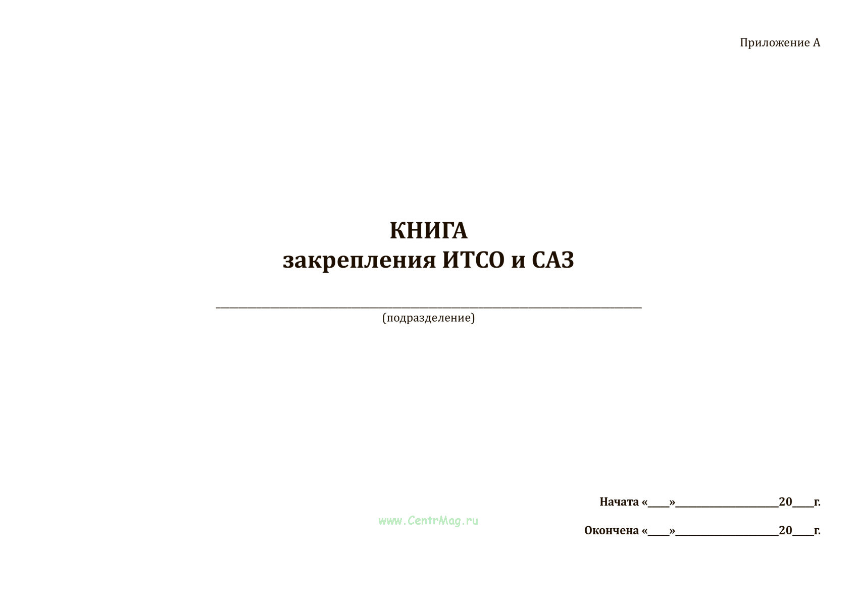 Форма Книги закрепления ИТСО и САЗ соответствует Приложению А к Распоряжению ОАО "Газпром" от 4 июля 2008 г. № 184