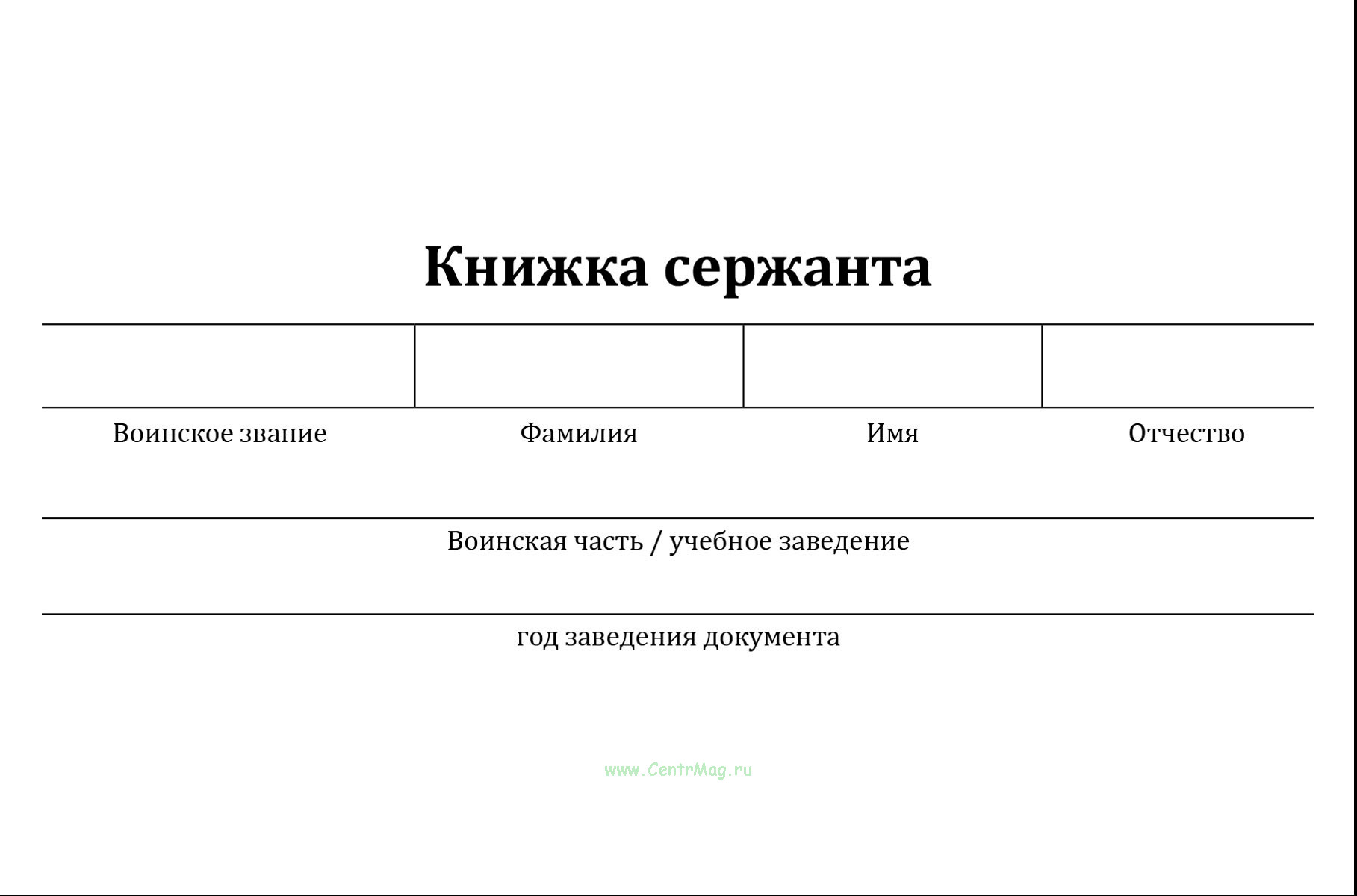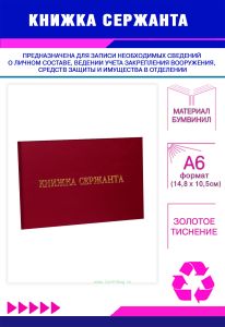 Книжка сержанта предназначена для записи необходимых сведений о личном составе, ведении учета закрепления вооружения, средств защиты и имущества в отделении.