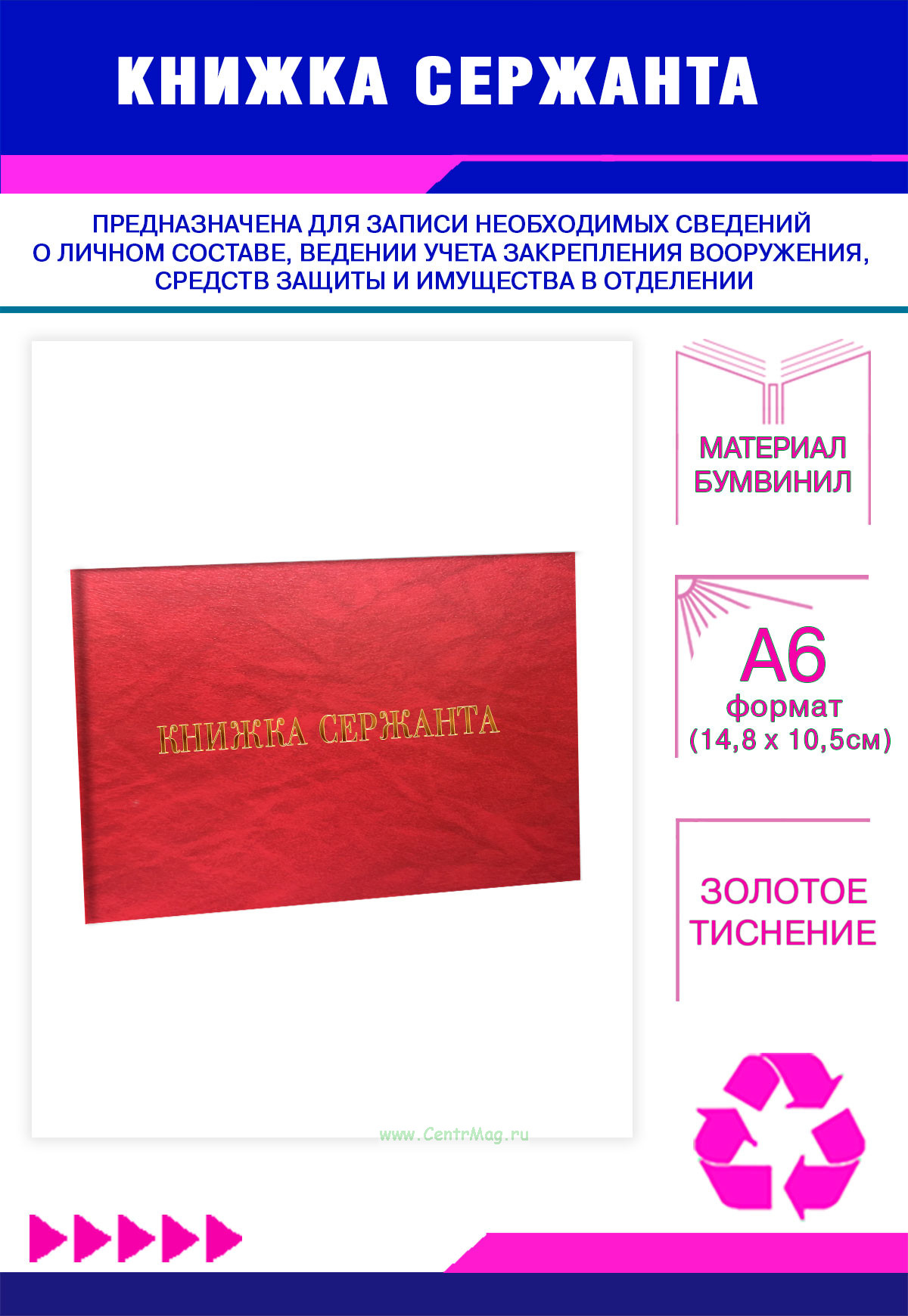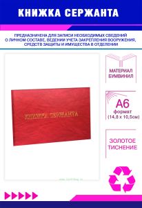 Книжка сержанта предназначена для записи необходимых сведений о личном составе, ведении учета закрепления вооружения, средств защиты и имущества в отделении.