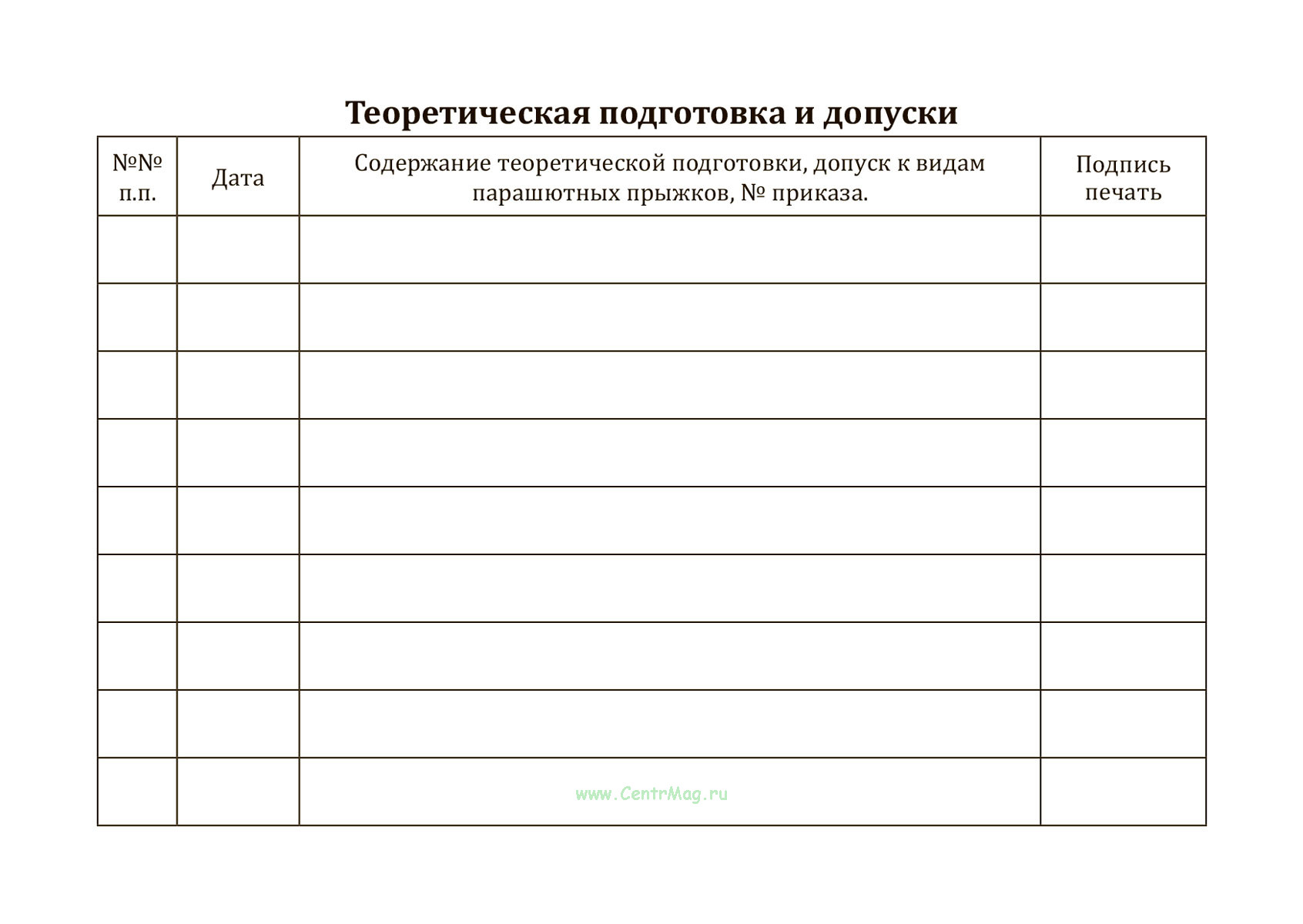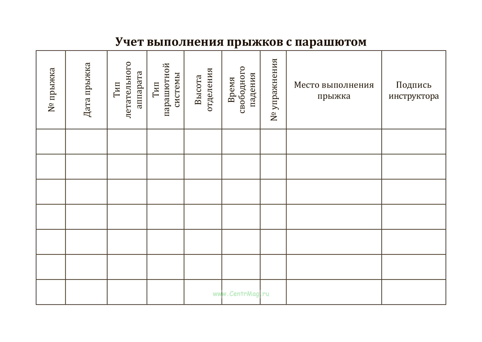 Компактная книжка парашютиста для фиксации каждого прыжка и результатов подготовки. Твердая обложка из износостойкого бумвинила защищает блок и аккуратно выглядит на брифинге и в укладочной. Внутри - продуманные формы на русском языке: персональные данные с местом для фото 3х4, "Общие сведения" (разряды, сертификаты A–D, удостоверения), большой журнал прыжков и раздел "Теоретическая подготовка и допуски". Таблицы включают ключевые графы: № прыжка, дата, тип ЛА, тип парашютной системы, высота отделения, время свободного падения, № упражнения, место выполнения и подпись инструктора. Приведена сводная таблица упражнений по СПП-2010 / КПП-2003 для удобства контроля прогресса. Удобный формат А6 позволяет носить книжку с собой и быстро заполнять записи после приземления.