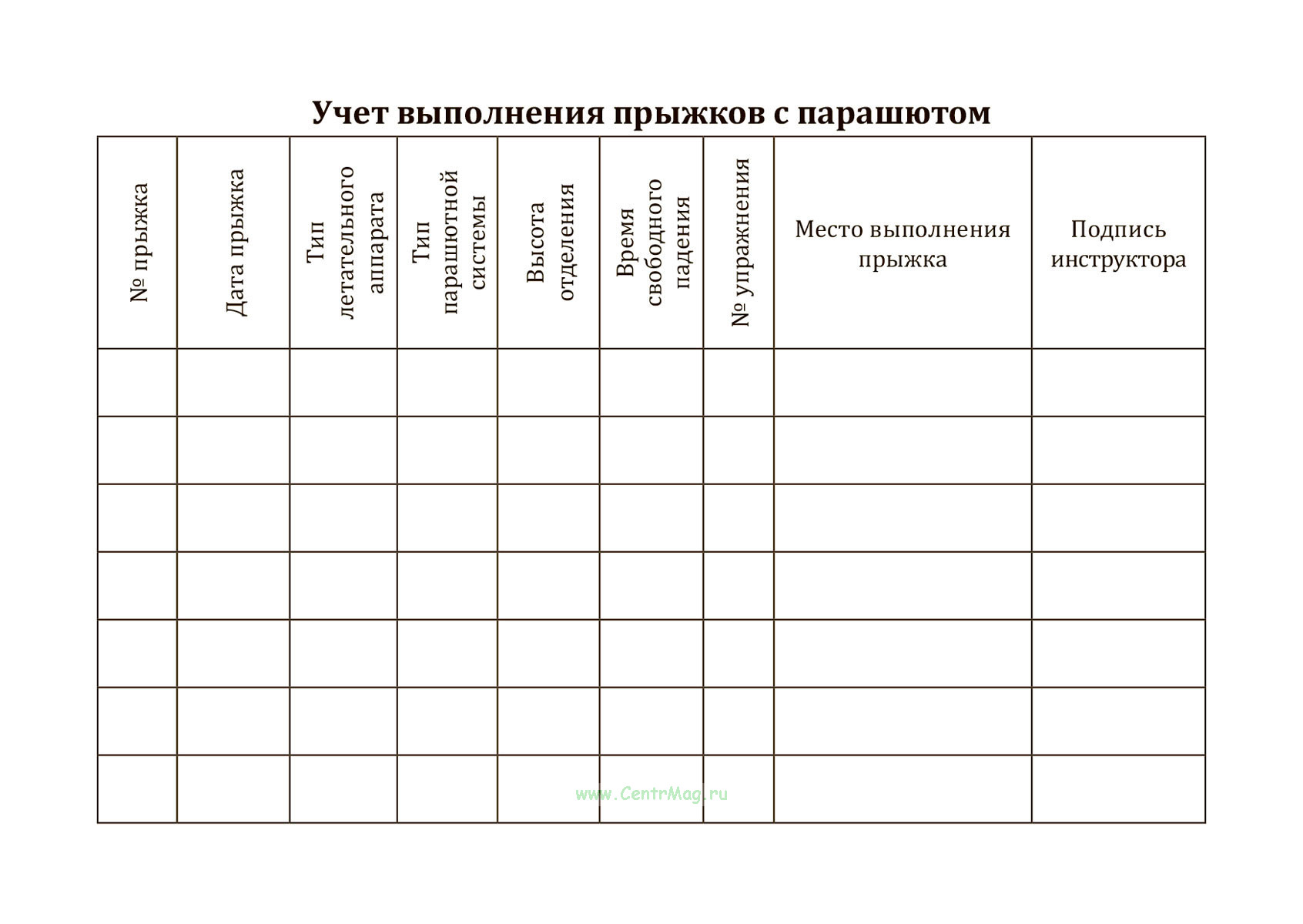 Компактная книжка парашютиста для фиксации каждого прыжка и результатов подготовки. Твердая обложка из износостойкого бумвинила защищает блок и аккуратно выглядит на брифинге и в укладочной. Внутри - продуманные формы на русском языке: персональные данные с местом для фото 3х4, "Общие сведения" (разряды, сертификаты A–D, удостоверения), большой журнал прыжков и раздел "Теоретическая подготовка и допуски". Таблицы включают ключевые графы: № прыжка, дата, тип ЛА, тип парашютной системы, высота отделения, время свободного падения, № упражнения, место выполнения и подпись инструктора. Приведена сводная таблица упражнений по СПП-2010 / КПП-2003 для удобства контроля прогресса. Удобный формат А6 позволяет носить книжку с собой и быстро заполнять записи после приземления.