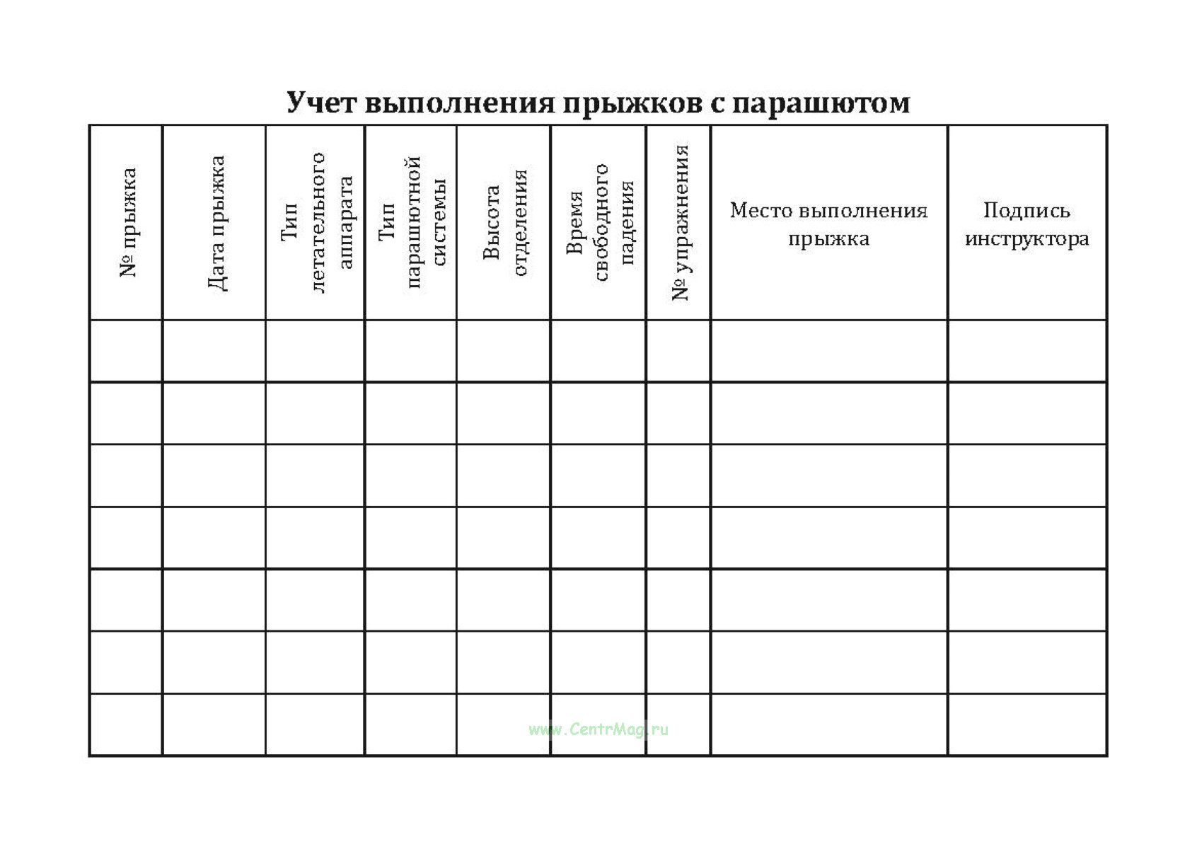 Компактная книжка парашютиста для фиксации каждого прыжка и результатов подготовки. Твердая обложка из износостойкого бумвинила защищает блок и аккуратно выглядит на брифинге и в укладочной. Внутри - продуманные формы на русском языке: персональные данные с местом для фото 3х4, "Общие сведения" (разряды, сертификаты A–D, удостоверения), большой журнал прыжков и раздел "Теоретическая подготовка и допуски". Таблицы включают ключевые графы: № прыжка, дата, тип ЛА, тип парашютной системы, высота отделения, время свободного падения, № упражнения, место выполнения и подпись инструктора. Приведена сводная таблица упражнений по СПП-2010 / КПП-2003 для удобства контроля прогресса. Удобный формат А6 позволяет носить книжку с собой и быстро заполнять записи после приземления.