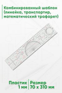 Комбинированный шаблон (линейка, транспортир, математический трафарет)