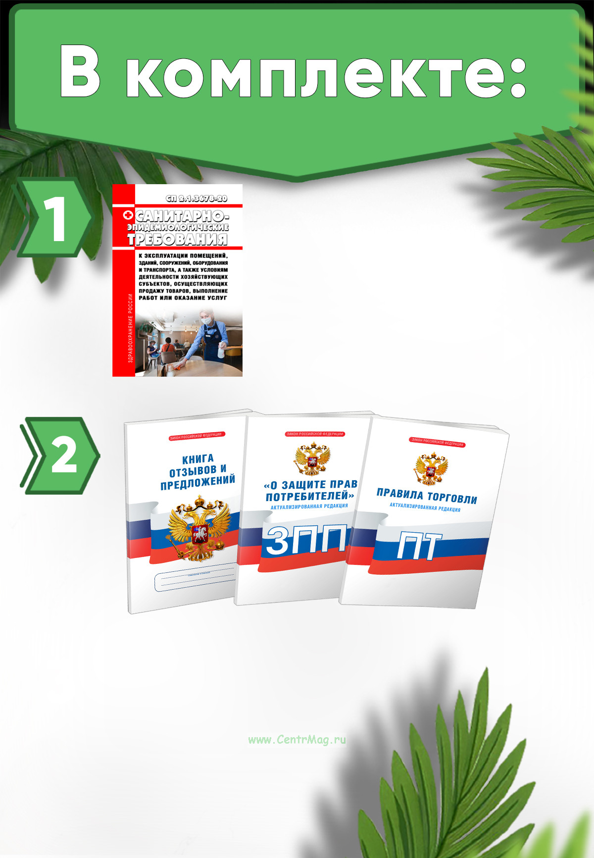 1. СП 2.1.3678-20 Санитарно-эпидемиологические требования к эксплуатации помещений, зданий, сооружений, оборудования и транспорта, а также условиям деятельности хозяйствующих субъектов, осуществляющих продажу товаров, выполнение работ или оказание услуг