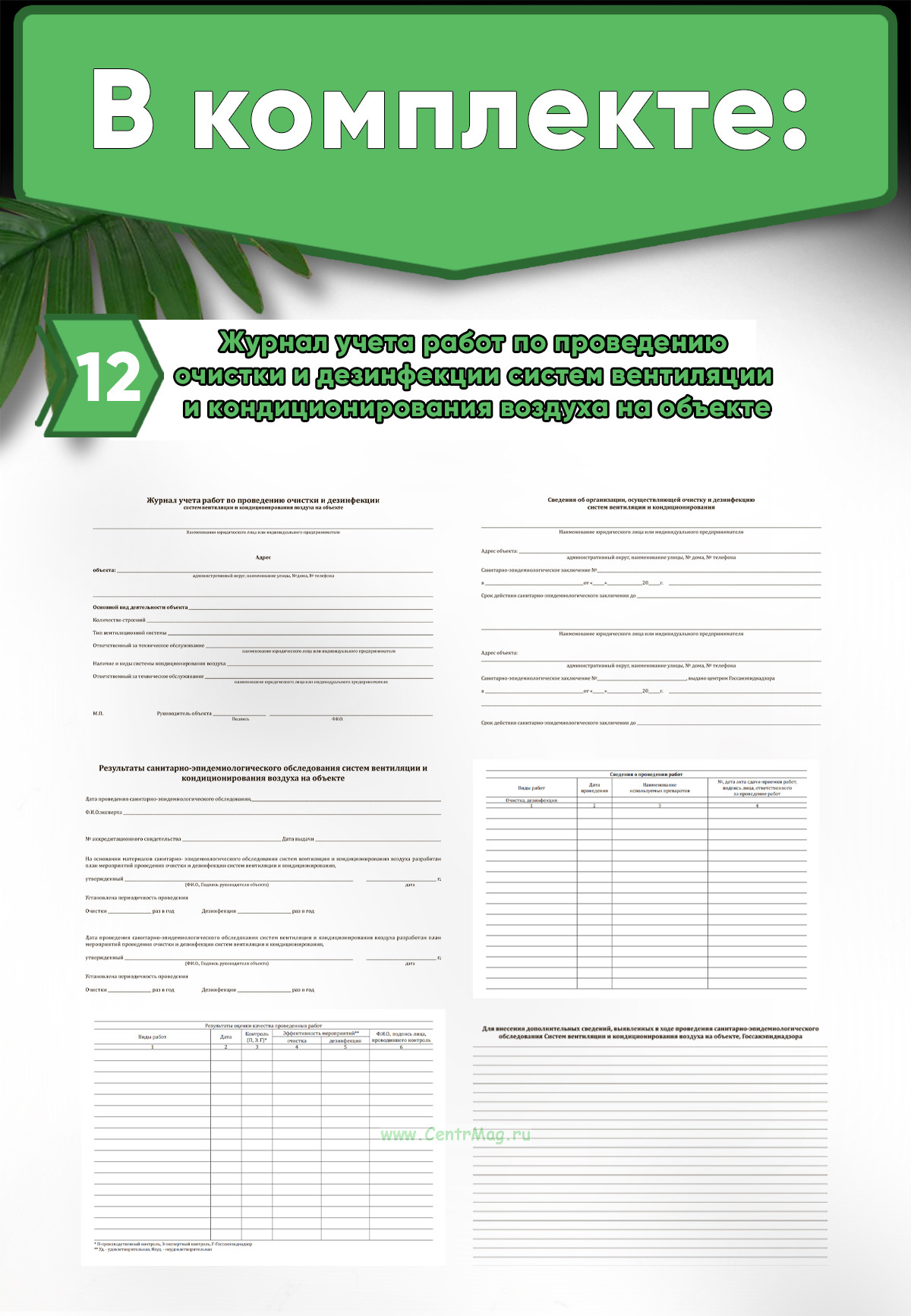 11. Журнал учета работ по проведению очистки и дезинфекции систем вентиляции и кондиционирования воздуха на объекте