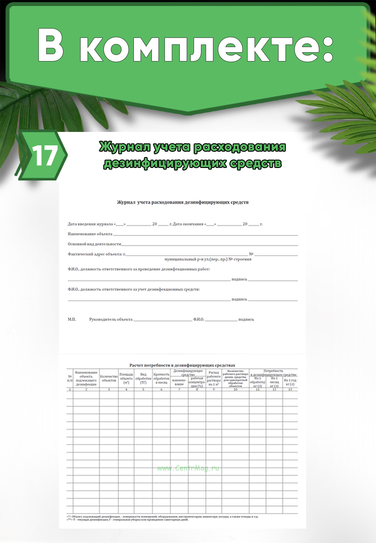 17. Журнал учета расходования дезинфицирующих средств