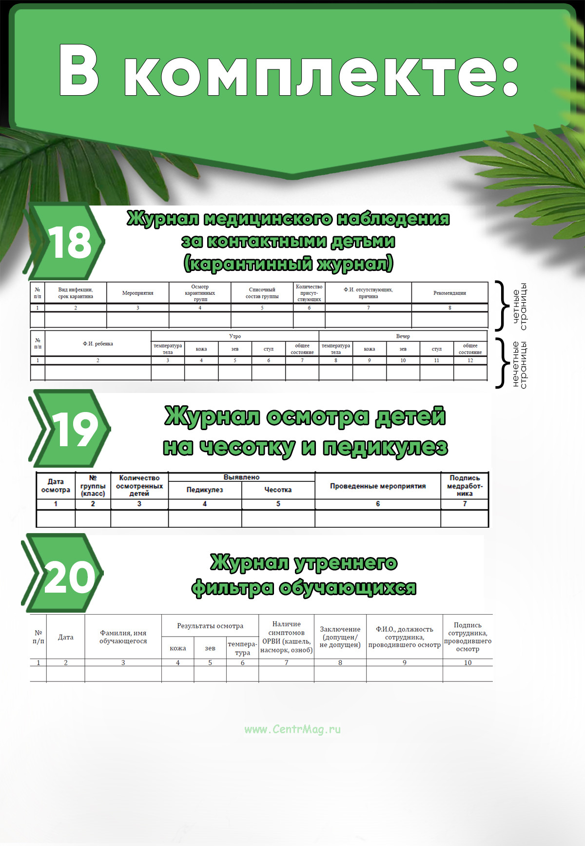 19. Журнал осмотра детей на чесотку и педикулез