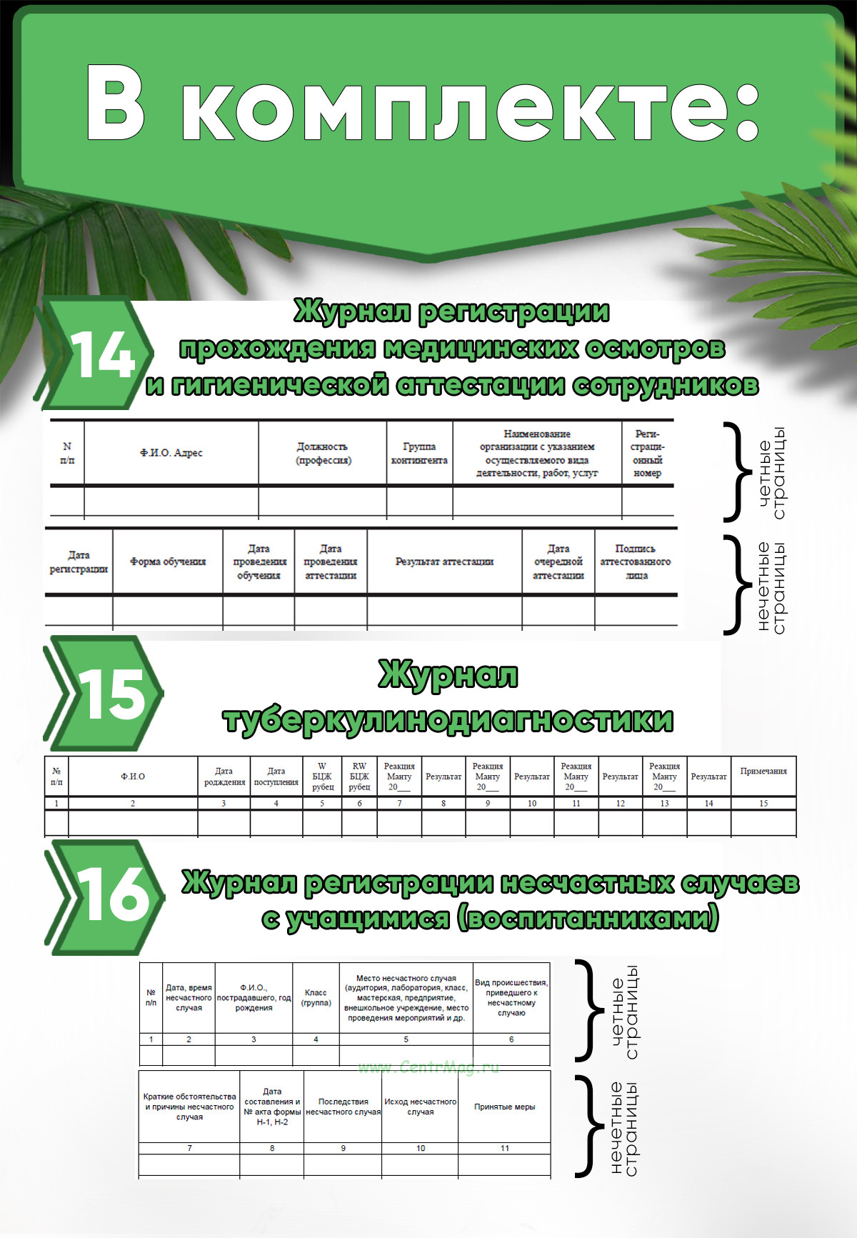 14. Журнал регистрации прохождения медицинских осмотров и гигиенической аттестации сотрудников
