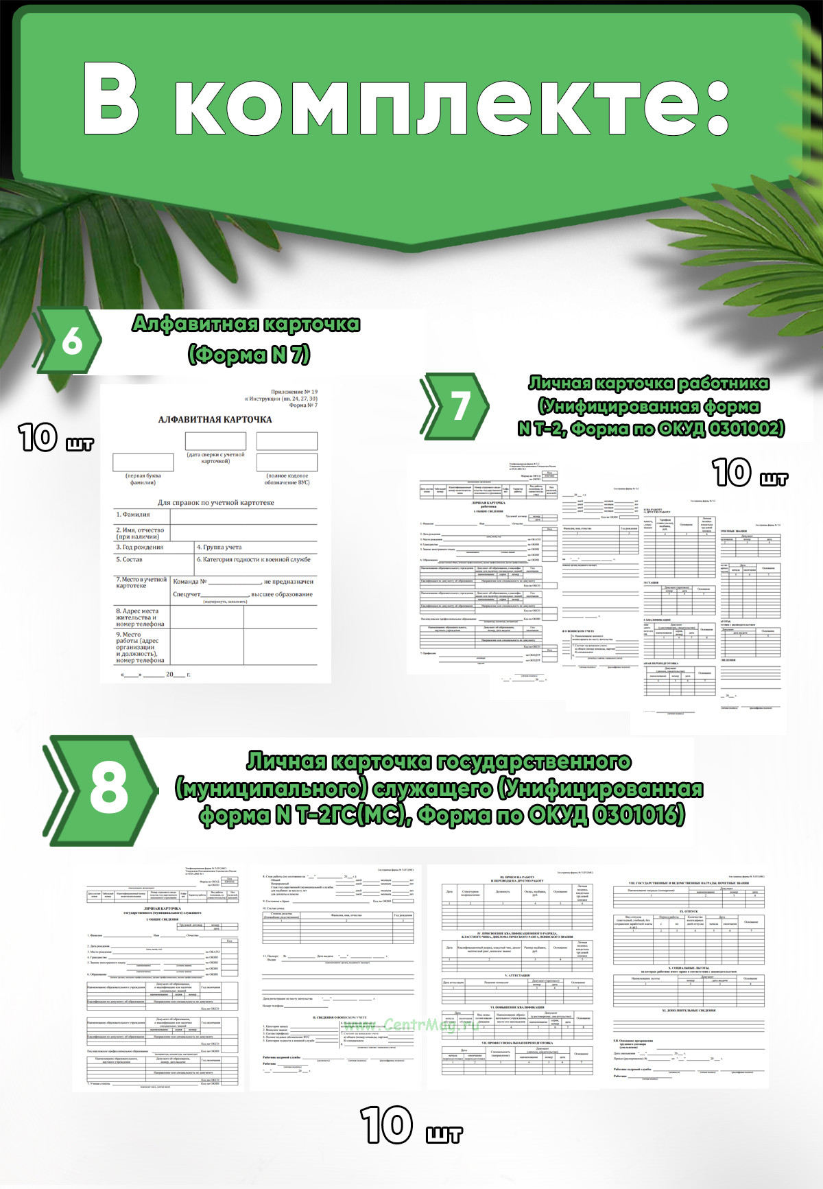 7. Личная карточка работника (Унифицированная форма N Т-2, Форма по ОКУД 0301002) - 10 шт