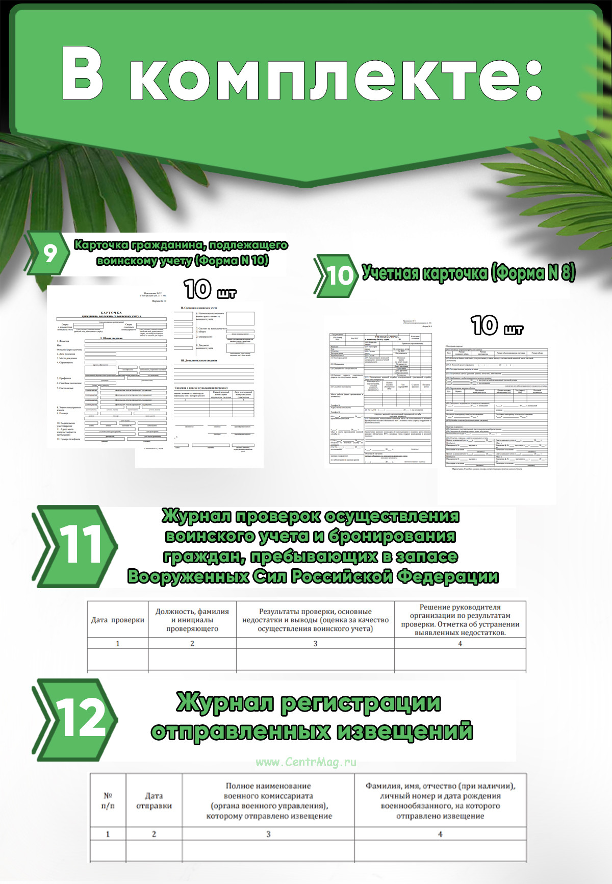 9. Карточка гражданина, подлежащего воинскому учету (Форма N 10) - 10 шт