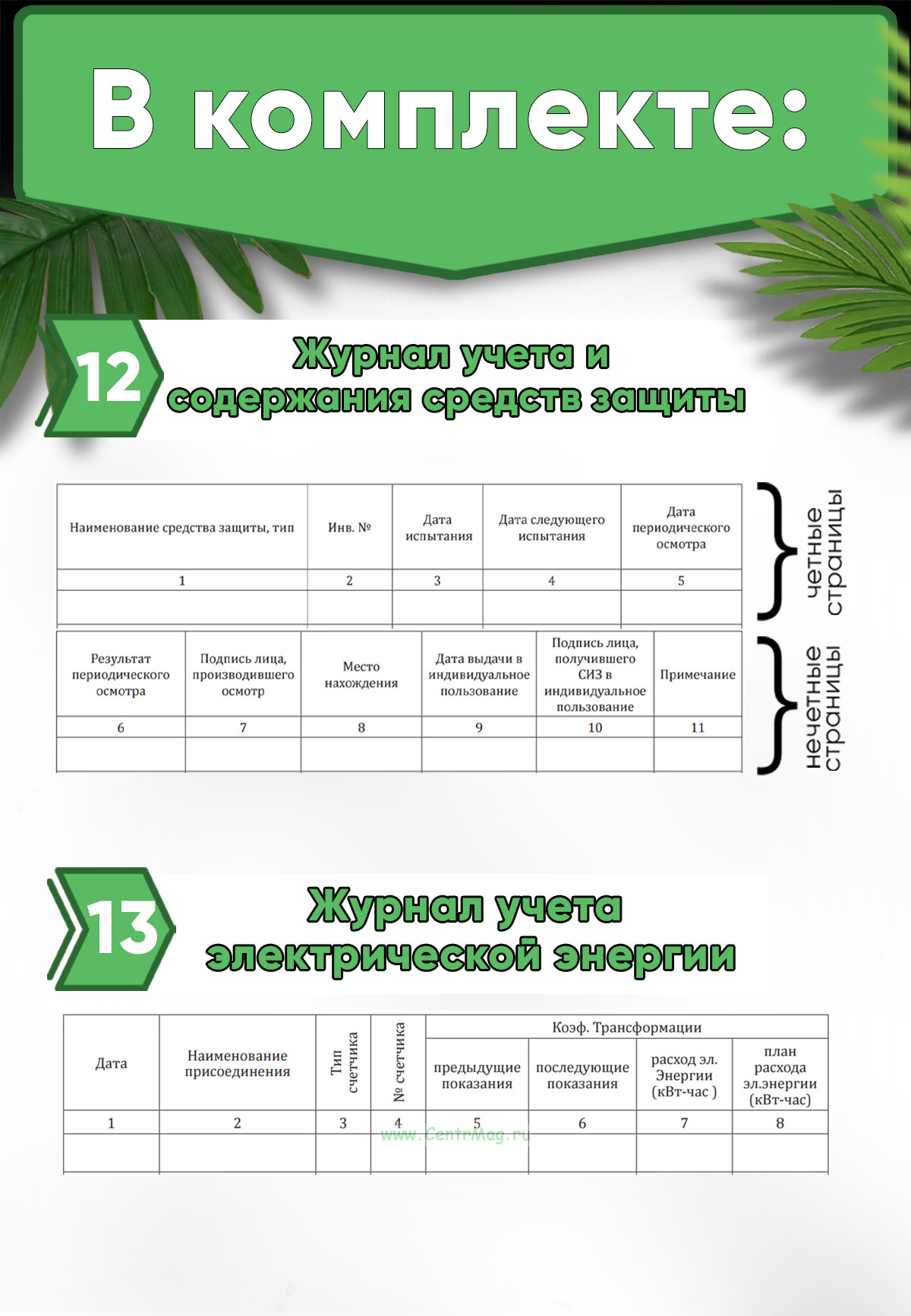Для обеспечения работы необходимо также иметь комплект журналов по охране труда и пожарной безопасности.