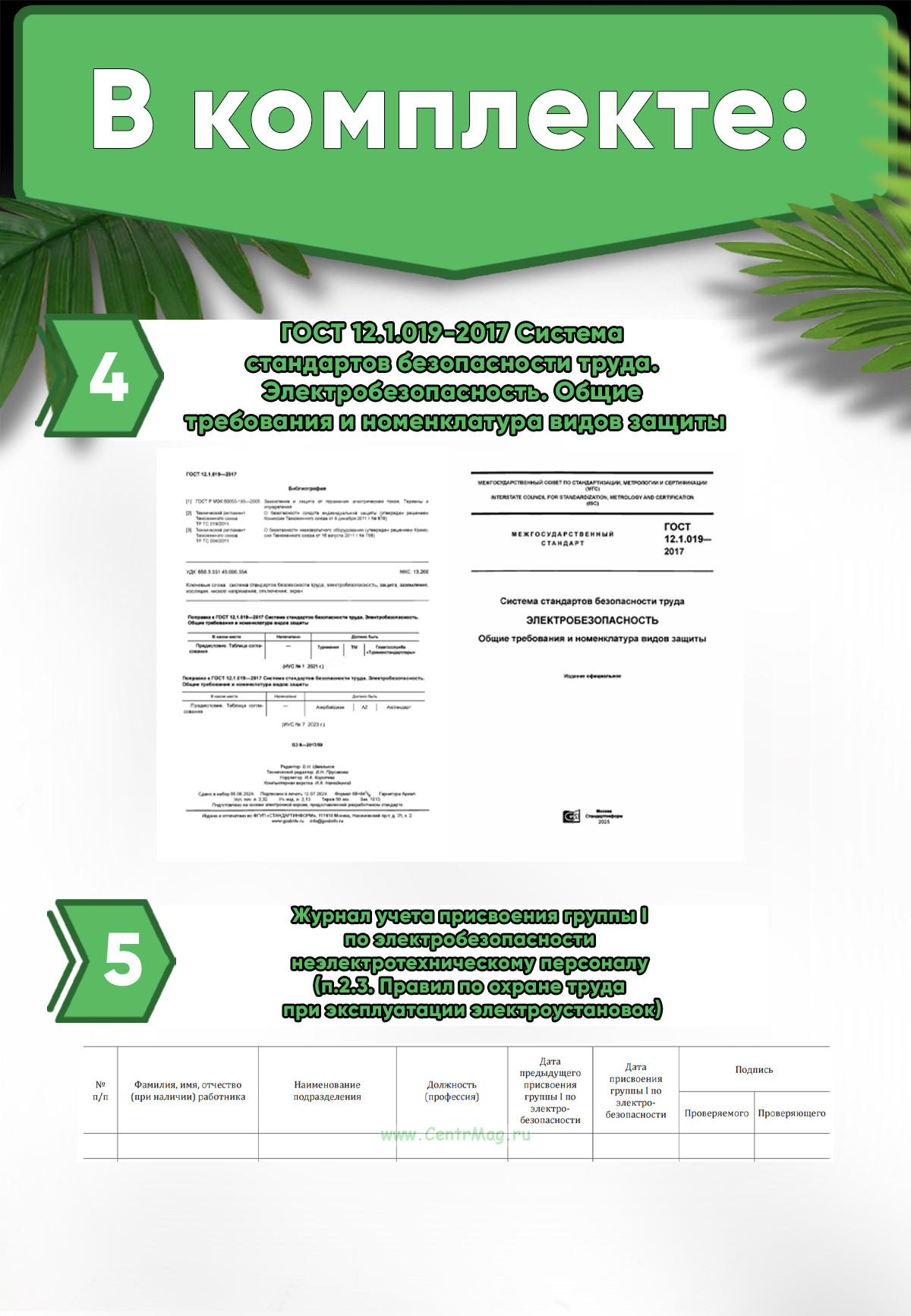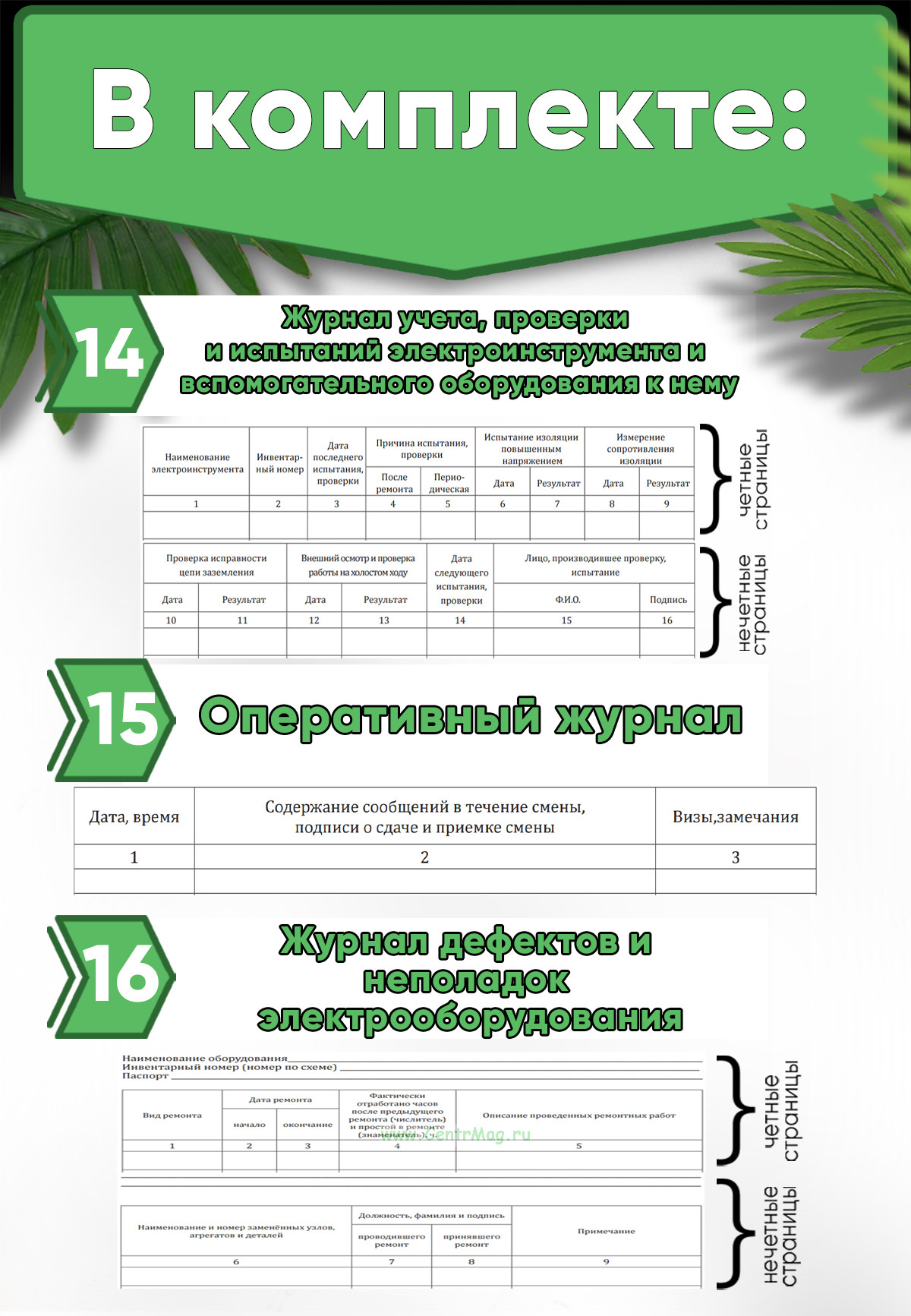 Для обеспечения работы необходимо также иметь комплект журналов по охране труда и пожарной безопасности.