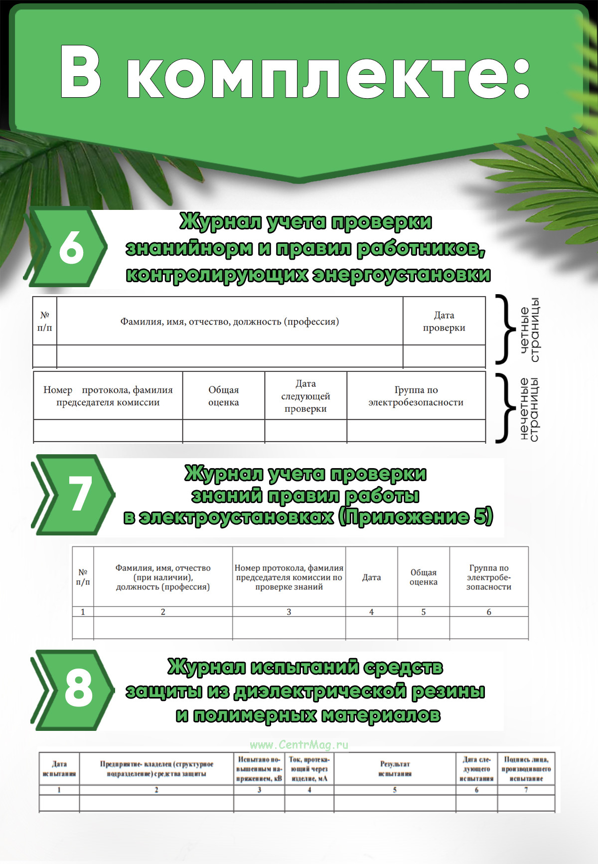 6. Журнал учета проверки знаний норм и правил работников, контролирующих энергоустановки.