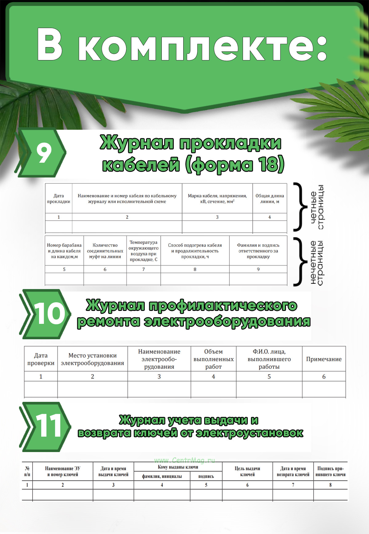11. Журнал учета выдачи и возврата ключей от электроустановок
