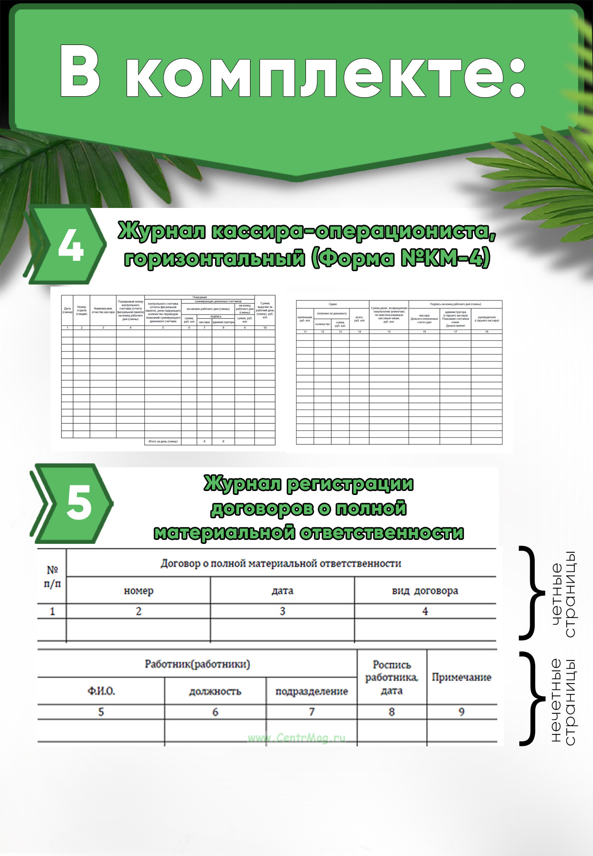 3. Журнал кассира-операциониста, горизонтальный (Форма №КМ-4)
