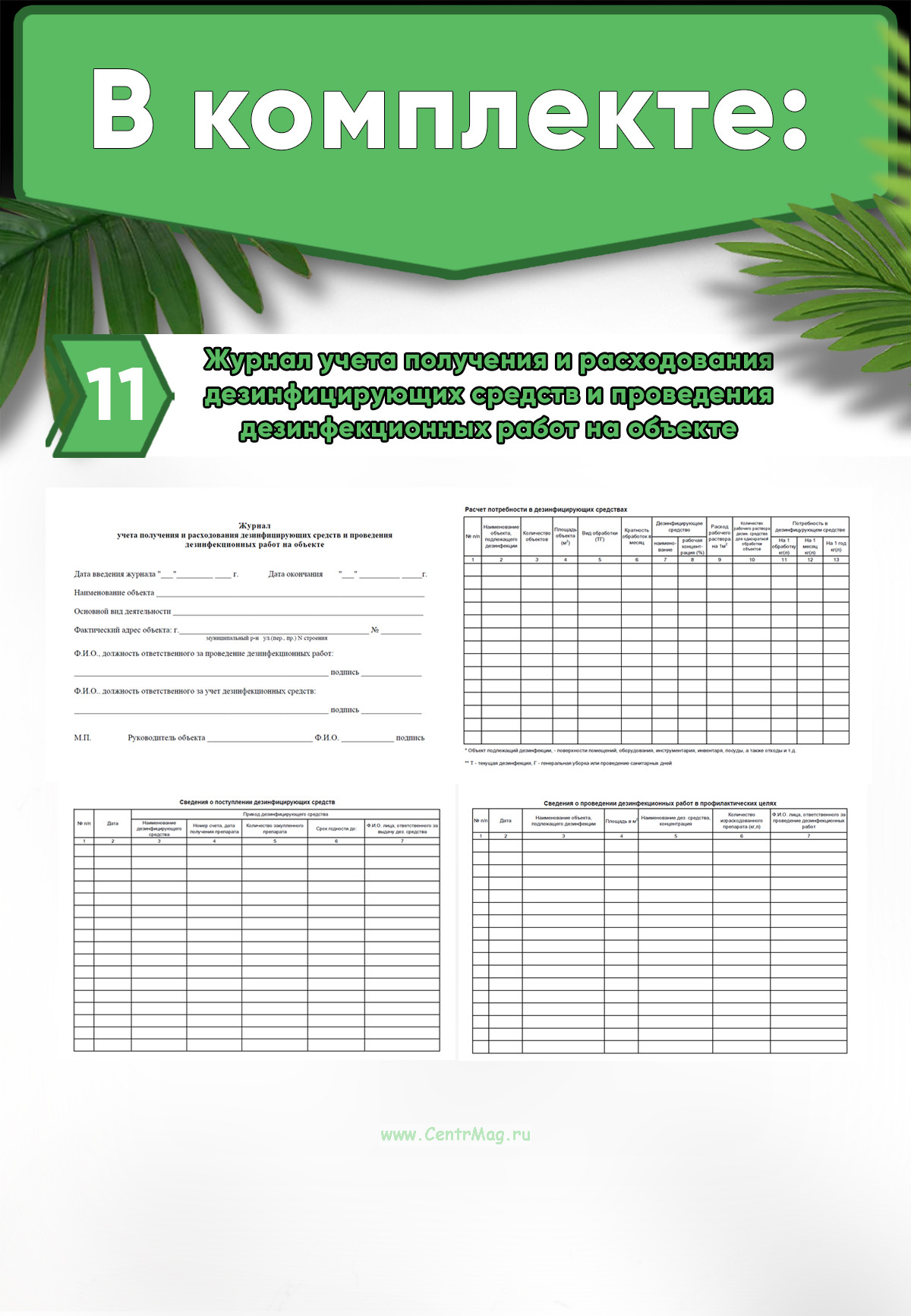 11. Журнал учета получения и расходования дезинфицирующих средств и проведения дезинфекционных работ на объекте