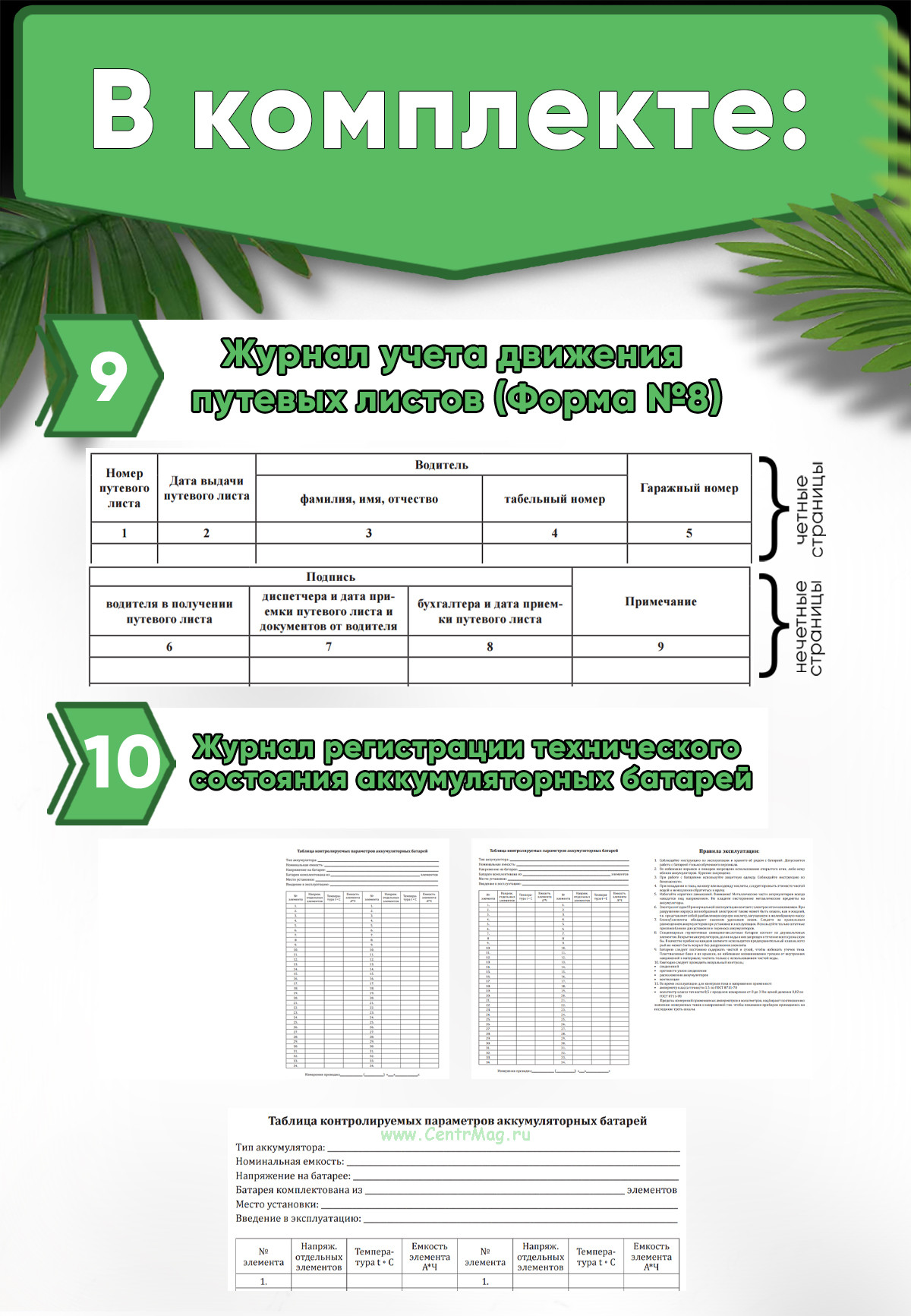 9. Журнал регистрации технического состояния аккумуляторных батарей