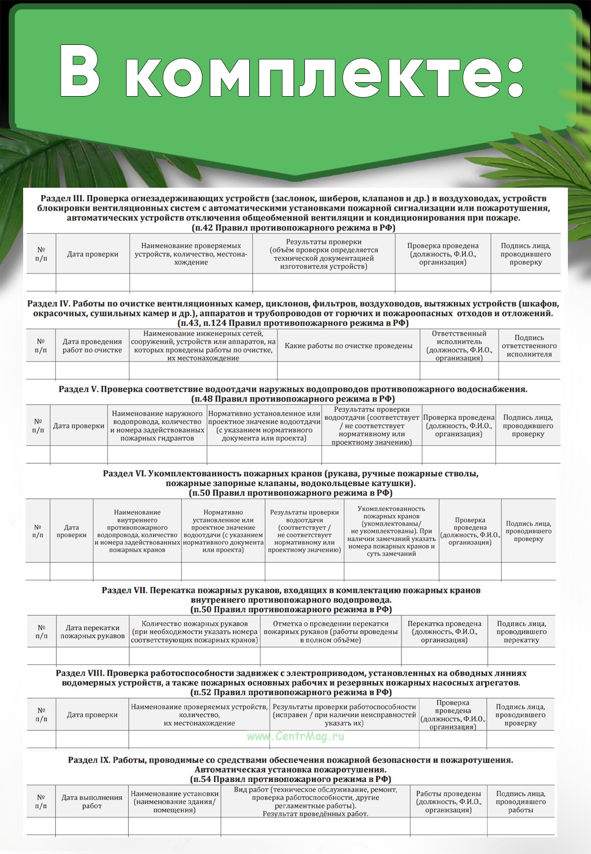 Содержимое комплекта является рекомендуемым, его ведение не регламентируется на законодательном уровне.