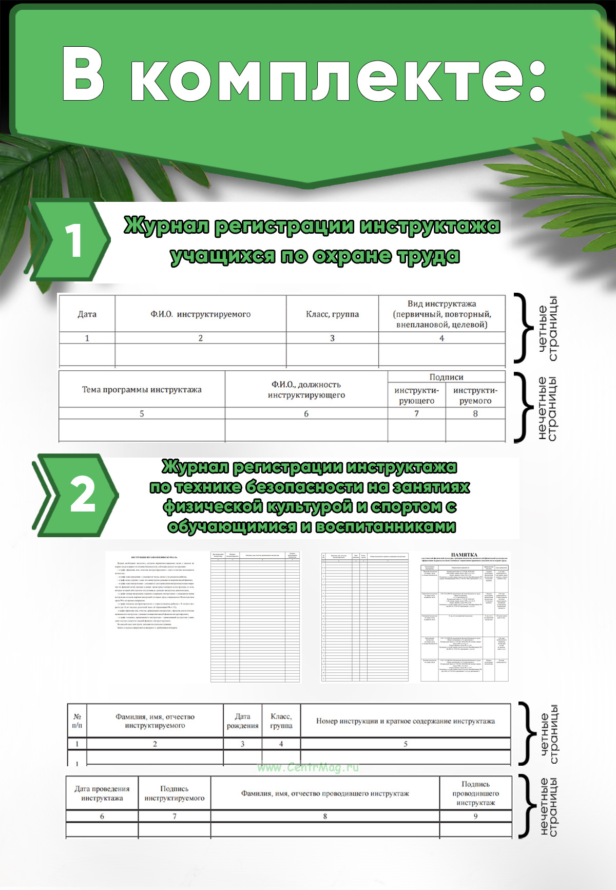 1. Журнал регистрации инструктажа учащихся по охране труда.