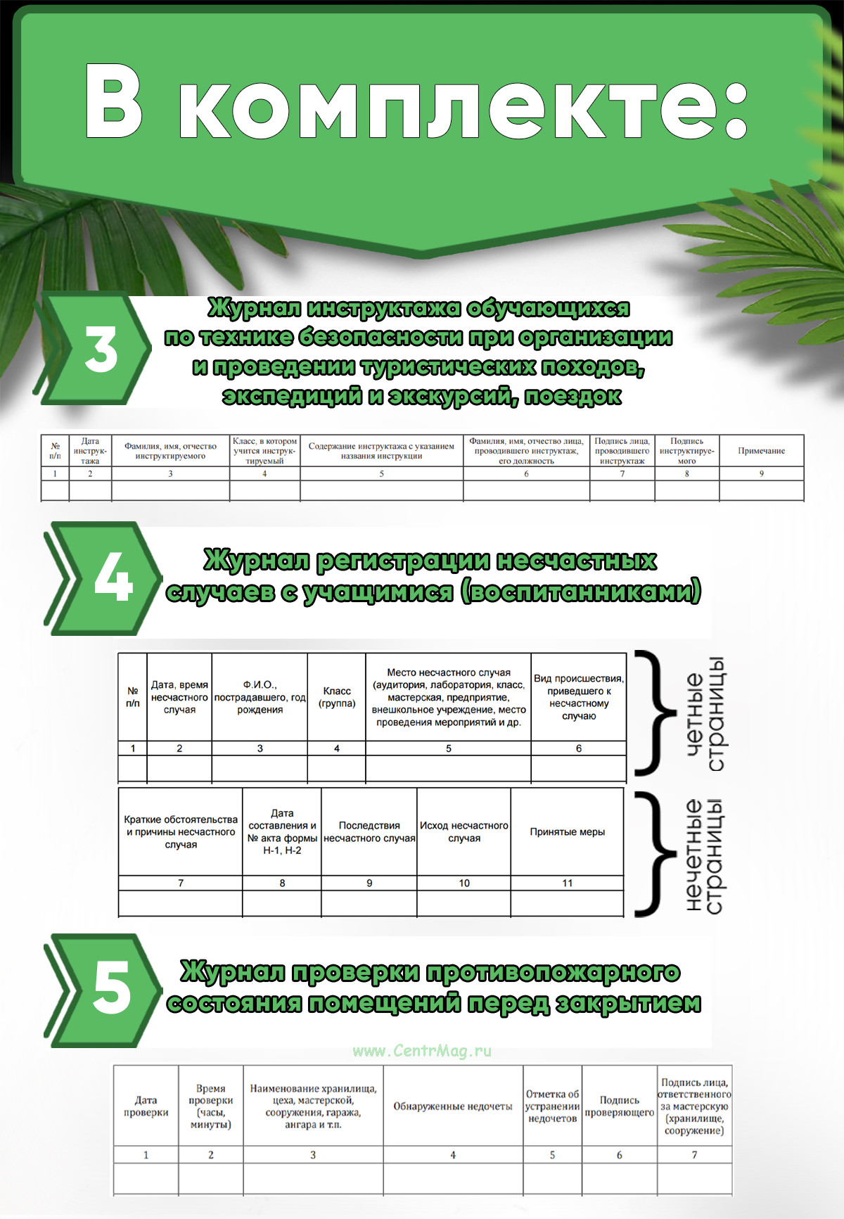 3. Журнал инструктажа обучающихся по технике безопасности при организации и проведении туристических походов, экспедиций и экскурсий, поездок