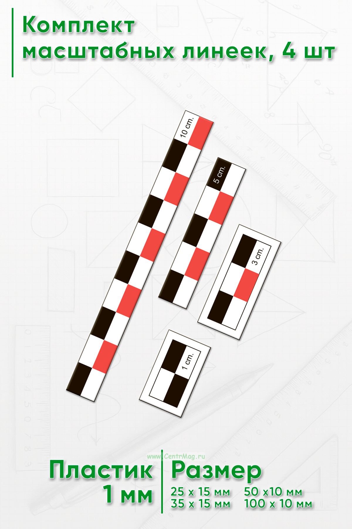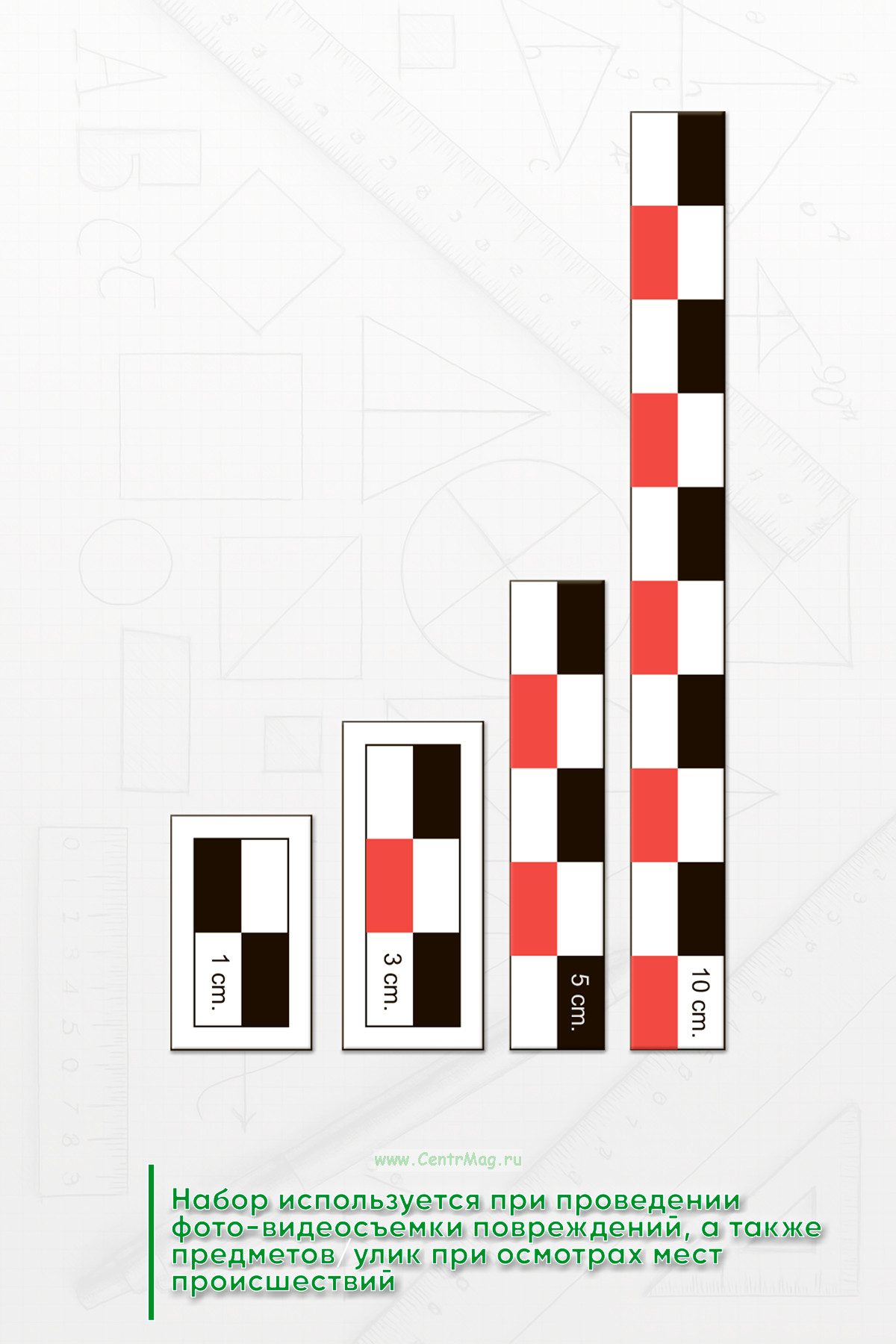Набор криминалистических масштабных линеек используется при проведении фото-видеосъемки повреждений, а также предметов/улик при осмотрах мест происшествий