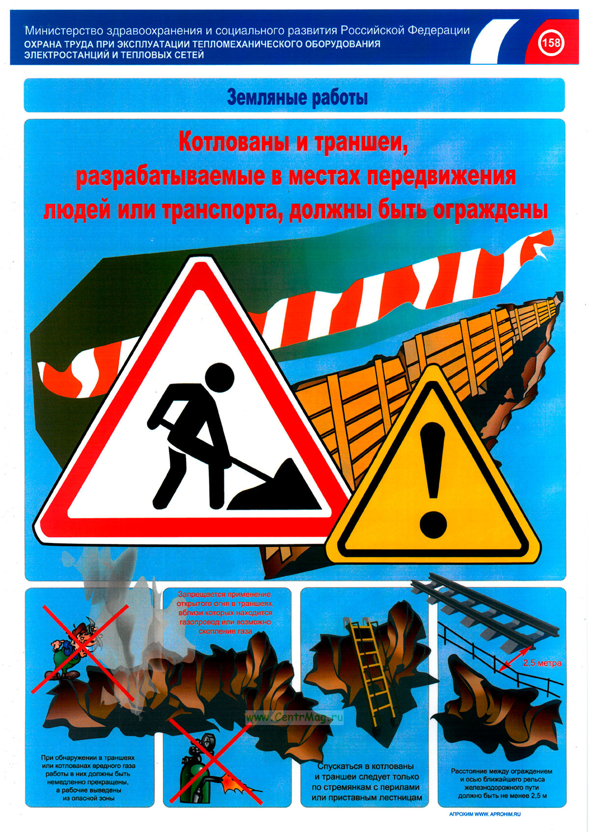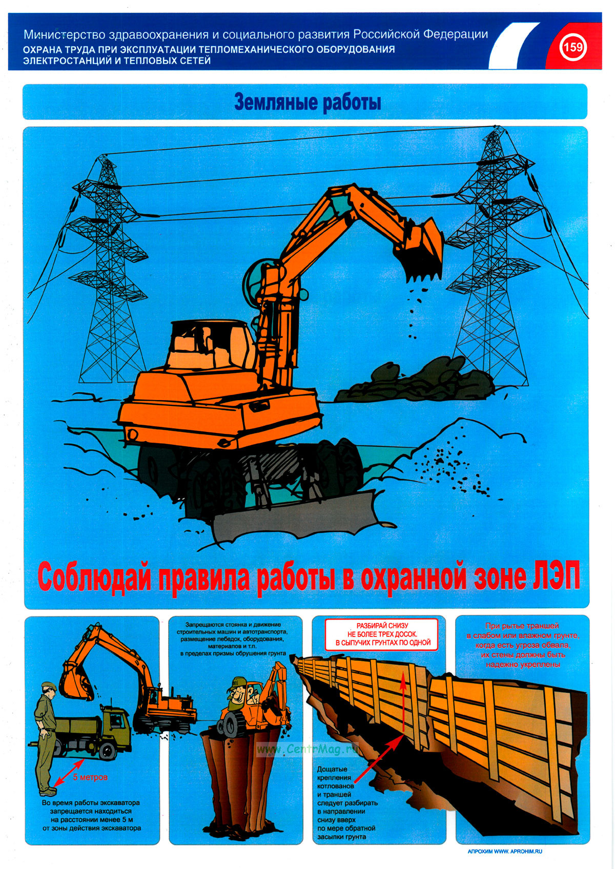 Комплект плакатов содержит информацию о правилах безопасности при ведении земляных работ.