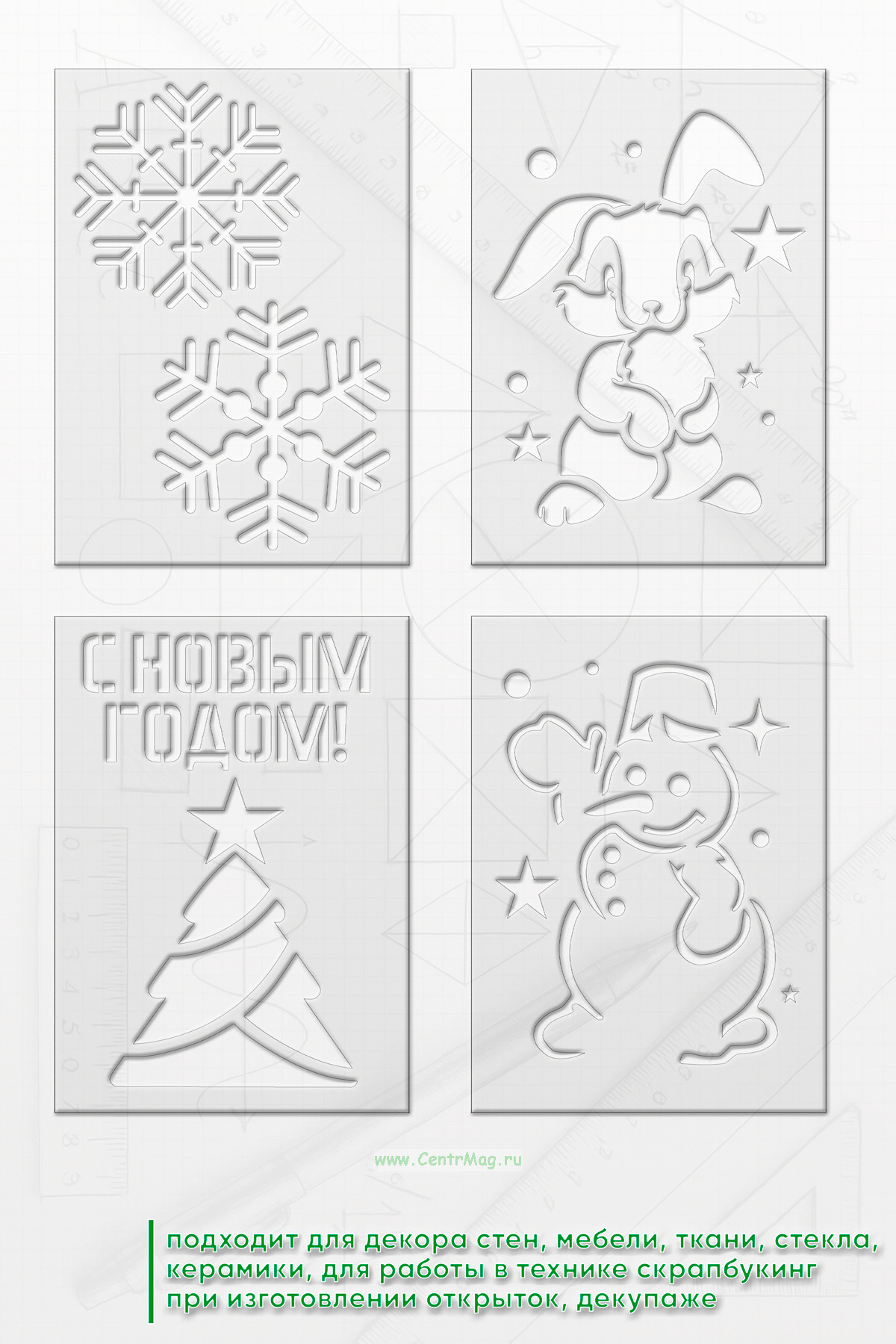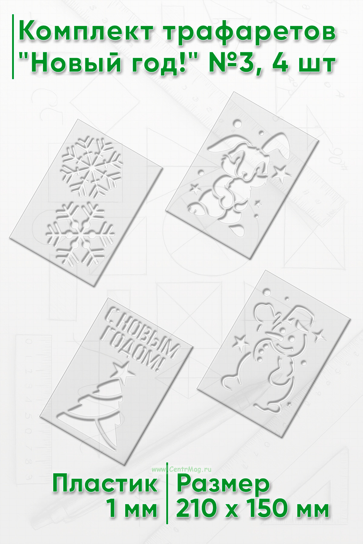 Комплект трафаретов "Новый год!" №3, 4 шт