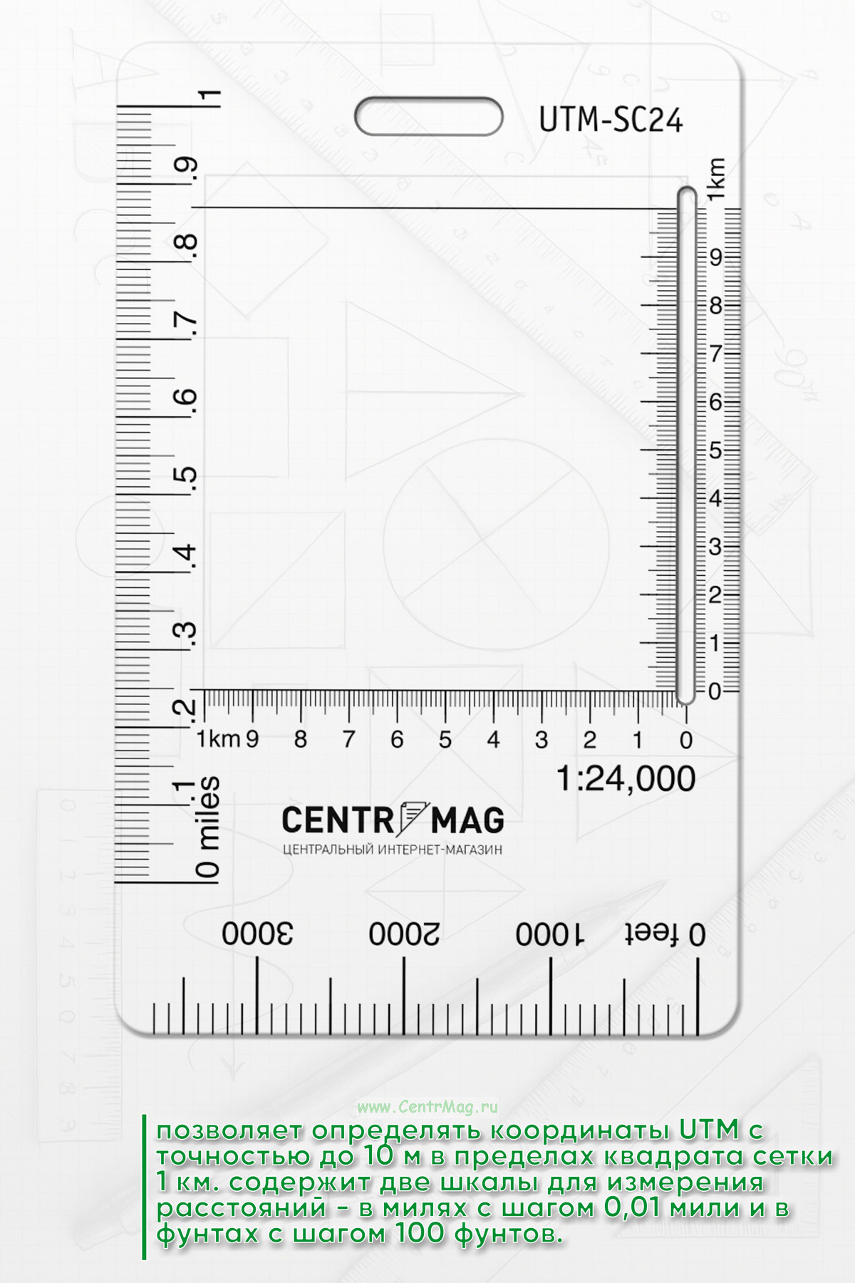 Координатная линейка UTM-SC24 позволяет определять координаты UTM с точностью до 10 м в пределах квадрата сетки 1 км.